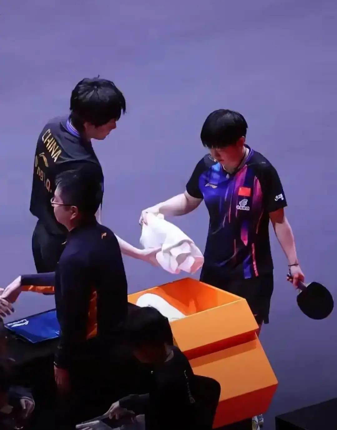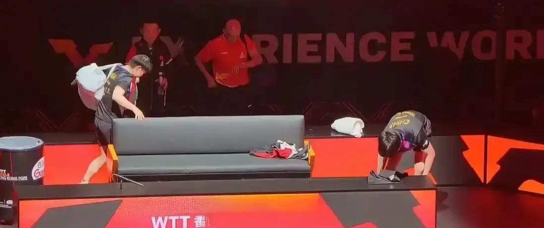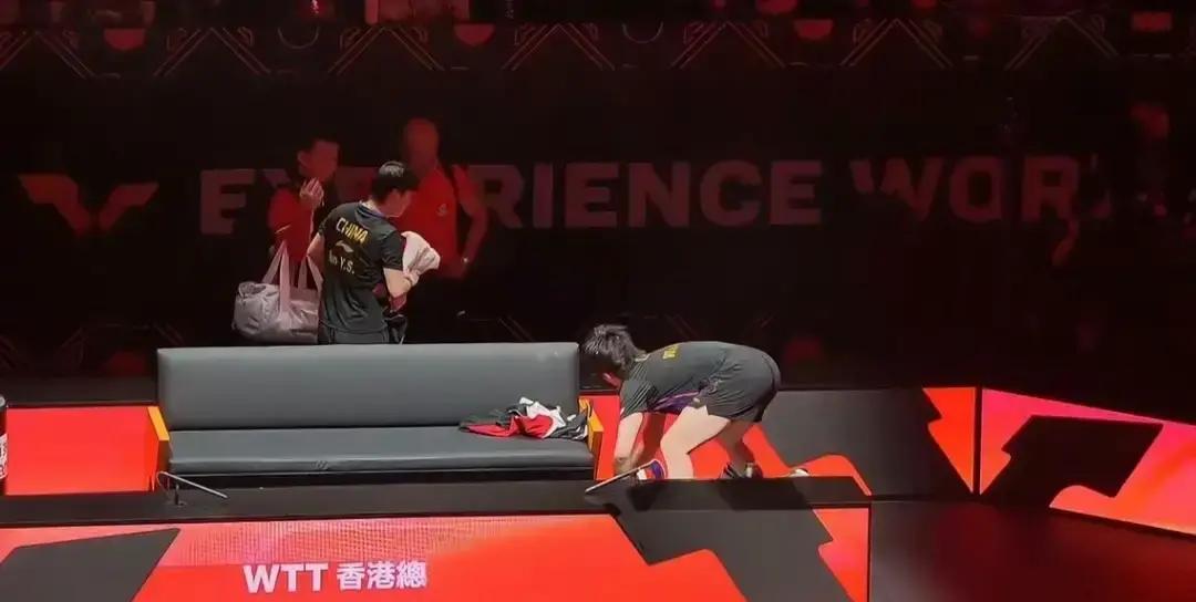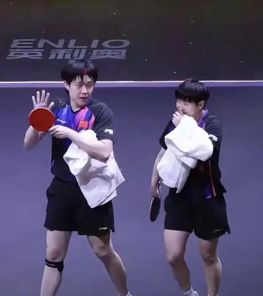 原来莎局出门也得跟搭档打声招呼啊。 莎莎说要回去上训,手里抱着毛巾和水,连外套都没顾上穿。走之前特意喊搭档,大头正手忙脚乱收拾东西,还是抬头应了句你走吧你走吧。 这俩人真的是事事有交代,件件有回应。 今天他俩对战阿杜和大圣,对手拼得够狠。杜姐为了救球都坐地上了,两边都挺棒的。