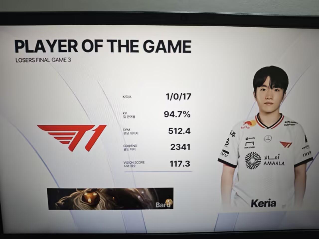 Keria巴德砍下1/0/17的战绩,拿下T1对阵DK第三局MVP