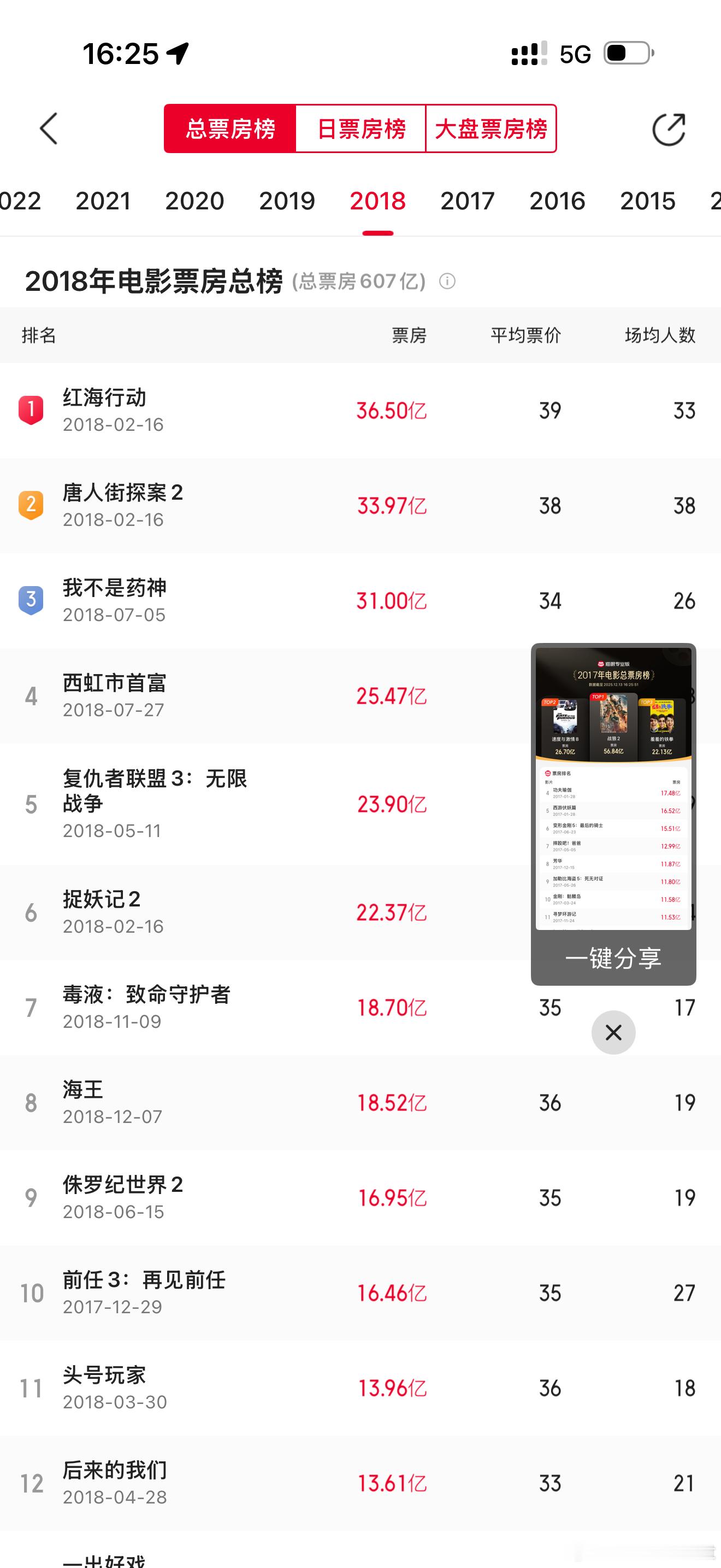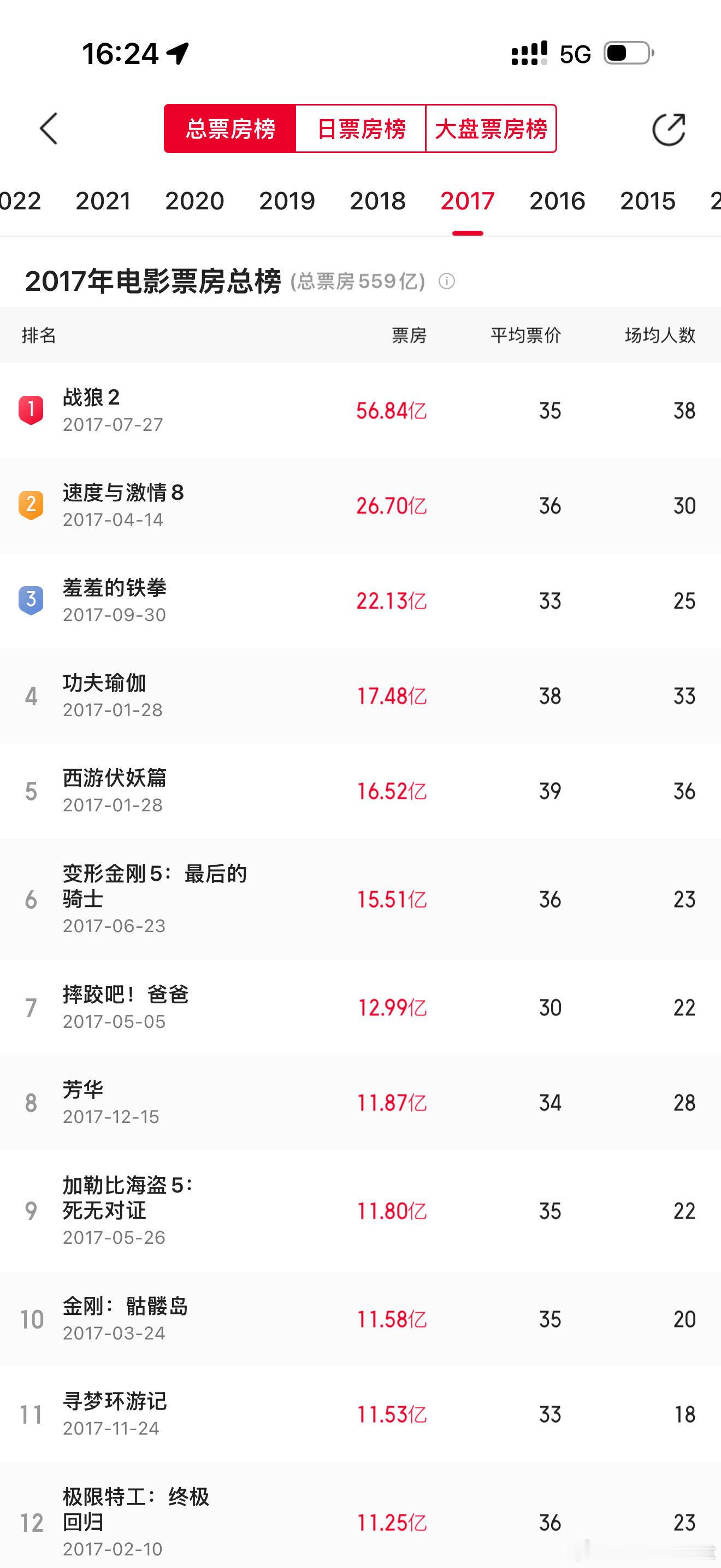托疯狂动物城2的爆火,2025年总票房终于超过500亿了。这一成绩超过了2024年的425亿,大概率是超不过2023年的549亿了。2017年,战狼2横空出世,拿下56亿票房,中国电影总票房也在那年突破500亿元。接着是2018年的607亿和2019年的641亿,然而2020年疫情爆发了。