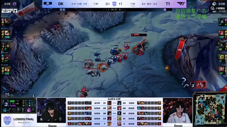 [4:51]上路换血Doran约里克拿下优势,闪现Q+小鬼伤害直接完成对位的单杀一血!
