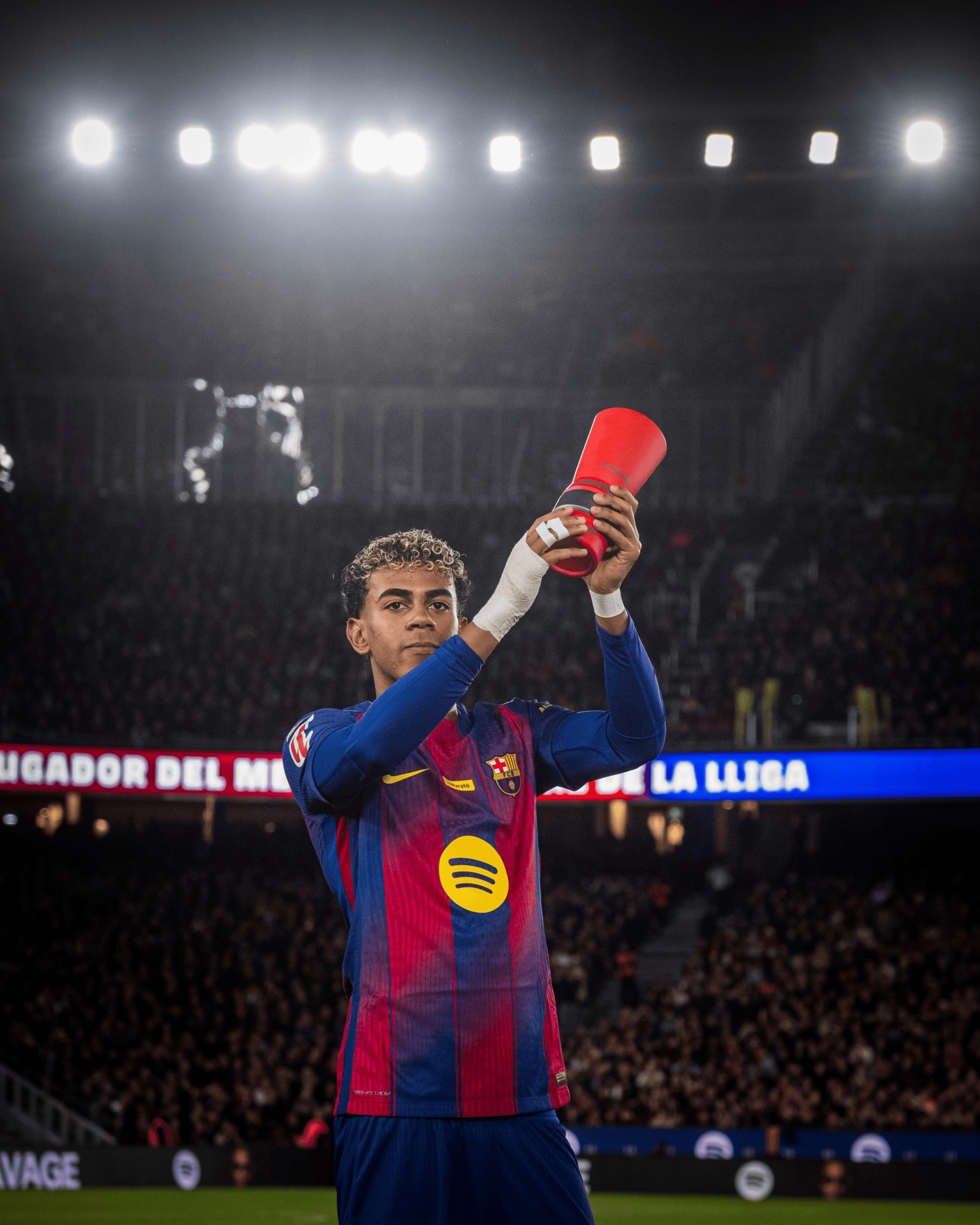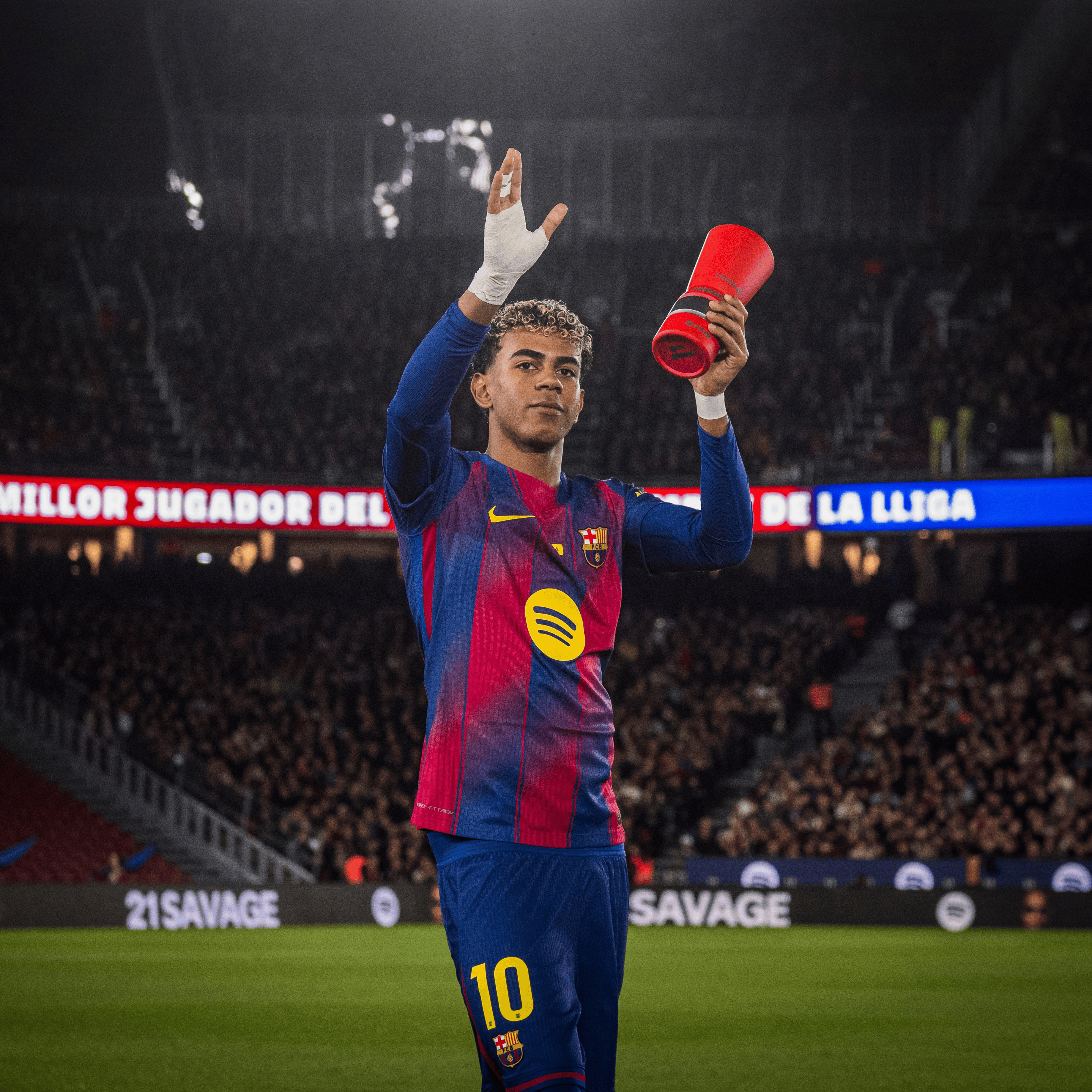 不久前获得西甲11月最佳球员头衔的他也在赛前向诺坎普球迷们展示自己的最佳奖杯。