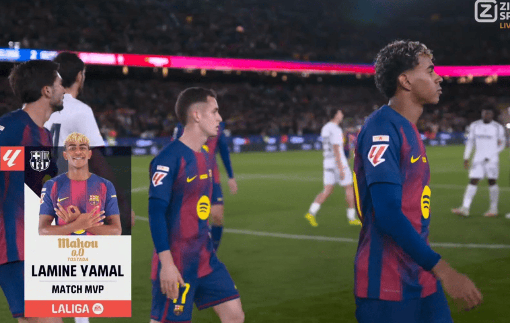 5过人,亚马尔当选巴塞罗那vs奥萨苏纳球迷票选全场最佳