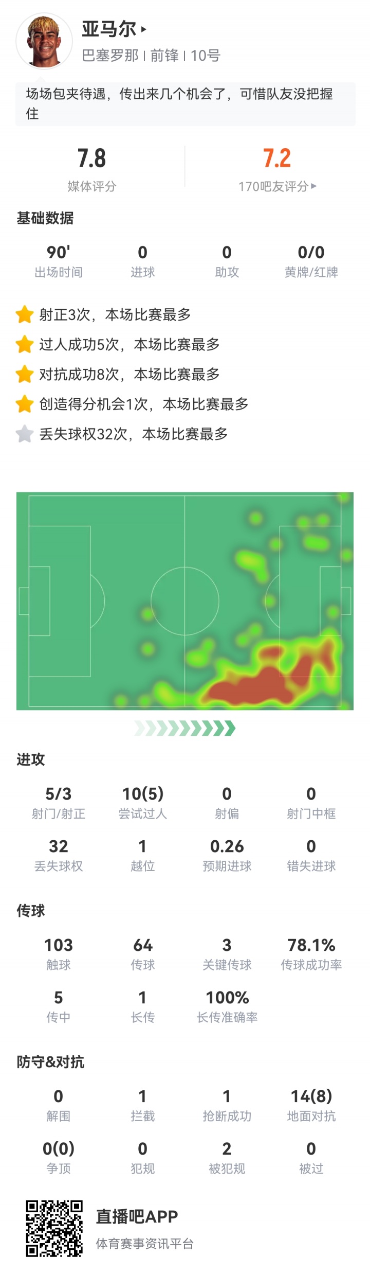 弗知。弗知。 2 2025-12-14 05:17 射门5次 丢失球权32次 0球0助 这都能给最佳 亲爹都不敢这么不要脸吧 本赛季亚马尔场均射门仅次于姆巴佩 结果进球连姆巴佩的三分之一都不到 场均丢失球权22次 全欧遥遥领先第二名的17次 要知道梅西是持球大核 职业生涯20年 场均丢失球权超过20次的赛季都才2个赛季 亚马尔真的是又低效又爱浪