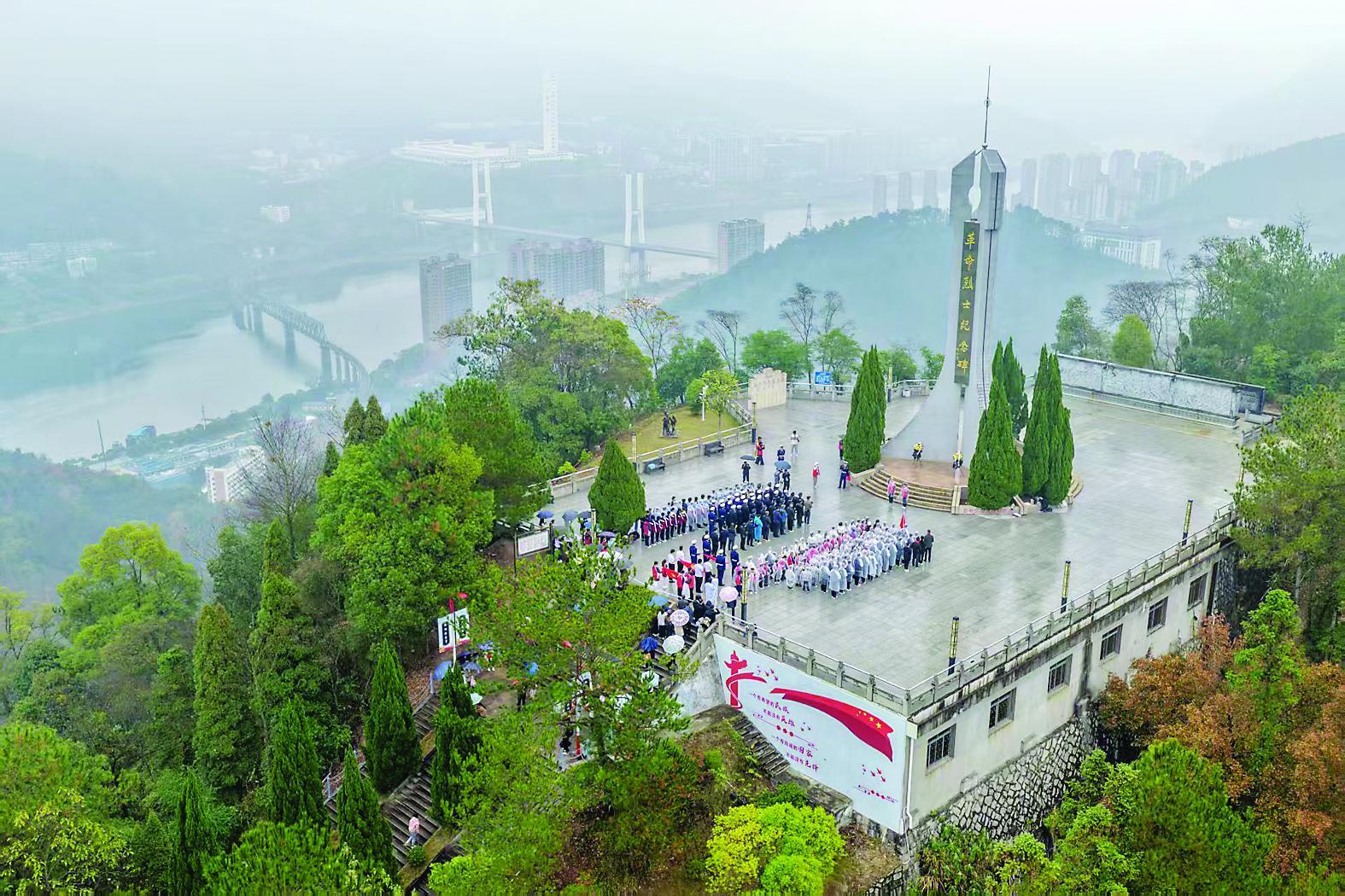 13日上午,南平市青少年宫、南平高速交警支队、延平区退役军人事务局等单位联合组织少先队员到南平市九峰山革命烈士纪念碑开展国家公祭日悼念活动,致敬革命先烈、弘扬爱国精神。图为活动现场。(陈子昕谢宏摄)