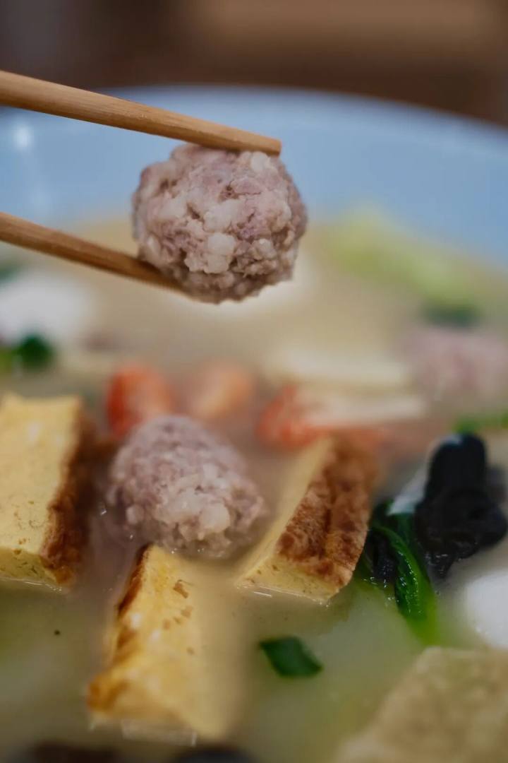 肉圆子也是刀剁出来,颗粒感十足,肉味就足。