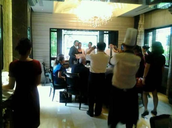 “12年前左右,我们绿城俱乐部要签约什么东西,他来了,我们四个人在俱乐部后面的桃花源给他烧菜。龙井虾仁、叫花鸡、东坡肉、宋嫂鱼羹,都是那些名菜。老外感觉猪肉不太喜欢,但东坡肉他喜欢的。”