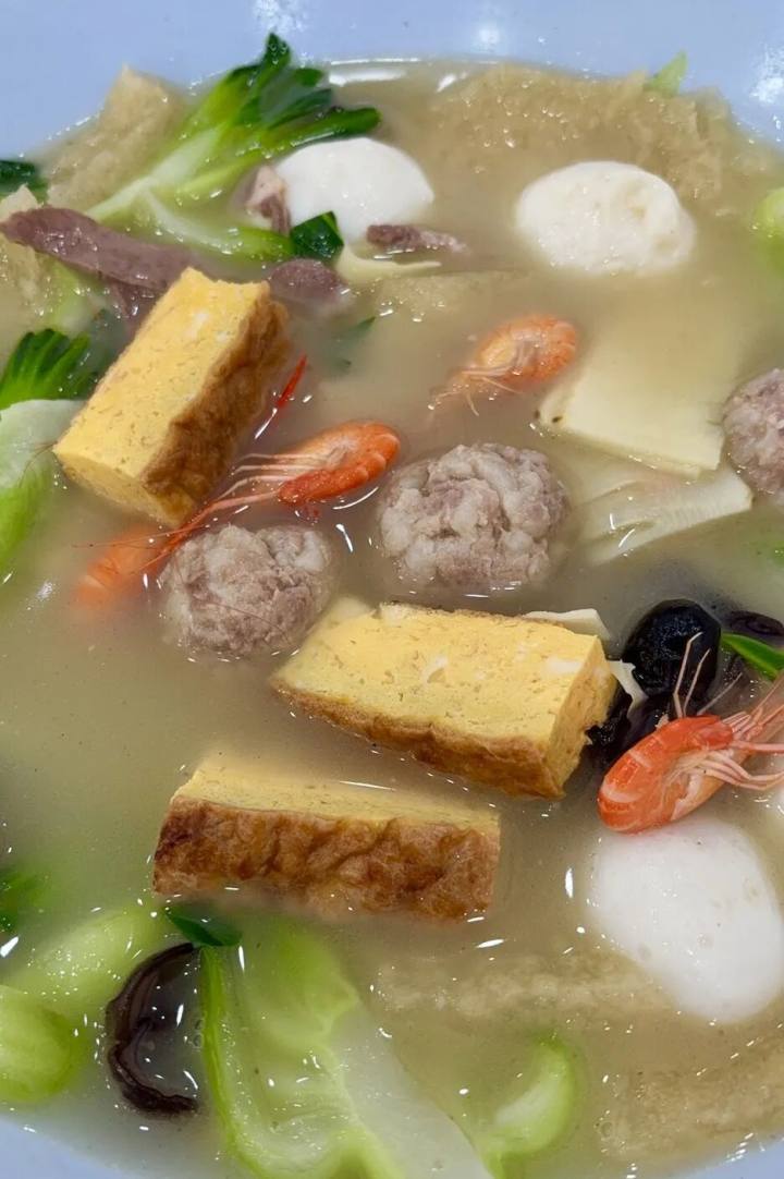 到上萧山靠近诸暨那一带,蛋糕改蛋卷,也不大放青菜,主料就是冬笋、肉圆、猪肚、猪心,更注重料满。