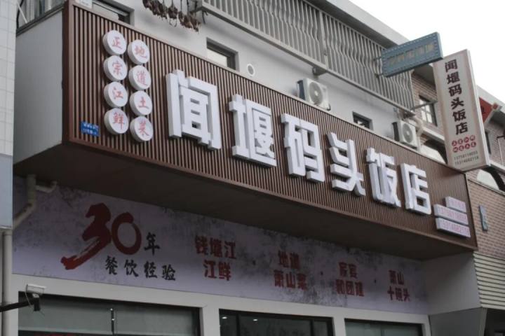 2016年,傅明亮就出来自己开店,老余杭开了几年,西兴又开了几年。现在闻堰这家店原先是“闻堰老街饭店”,盘过来,改成“闻堰码头饭店”,尔来二月有余。