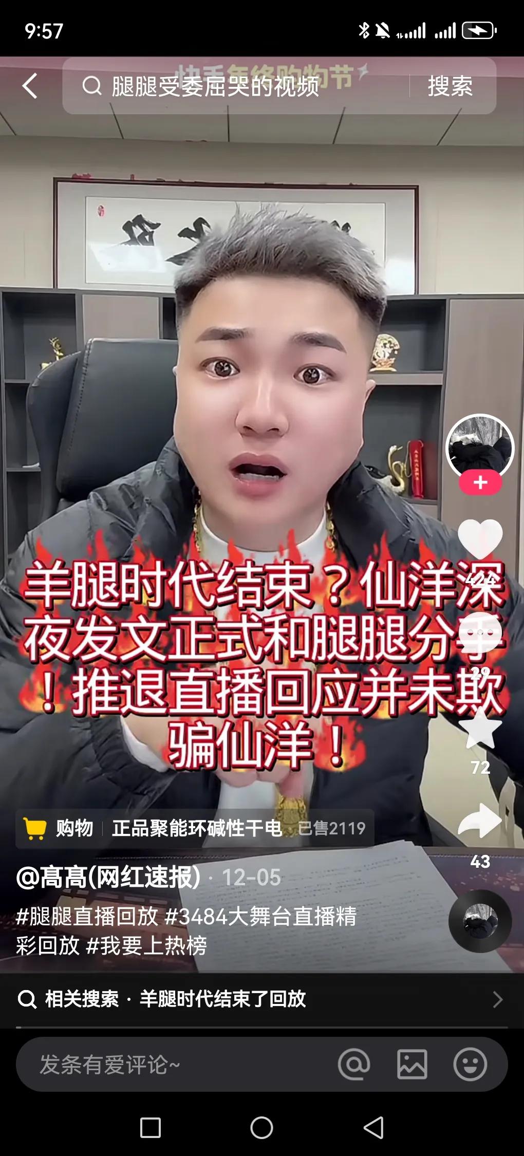 天塌了,爆炸了,剧本都不带这么演的,醋王深夜发文正式分手,羊腿时代结束,原来,腿腿没有正式离婚!现在女的真的令人啧舌,自己这边婚都没离那边还和男人谈对象,这真的是对感情的不负责, 两个人谈恋爱时候,醋王还极力为腿腿辩解,没想到感情专伤痴情的人,今天,得知醋王分手,昔日醋王最火的徒弟连夜赶到恩师直播间,因为醋王不能出脸,徒弟娜美在直播间给仙家军解释,然后泪撒直播间洗脑,不得不说娜美是直播的好苗子又吸了不少仙家军,仙家军也吸了不少娜美粉丝,两个现在是相互的,毕竟娜美现在粉丝量高人气高,其实娜美如果和醋王在一起就好了,很多人说师徒不能在一起,但是很多师徒就在一起了,还有现在娜美如果猜的不错是辛巴旗下的不属于仙家了,也不存在师徒关系了,他两如果在一起,不管是炒作还是真的,都是互联网的一片神话!