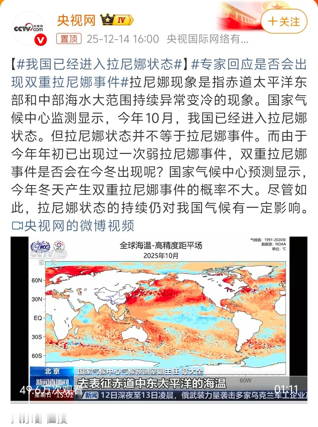 我国已经进入拉尼娜状态 简单理解就是接下可能会异常变冷?