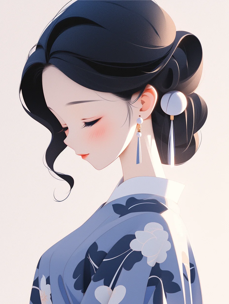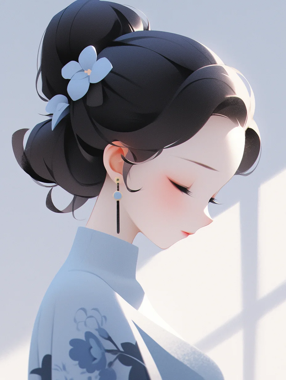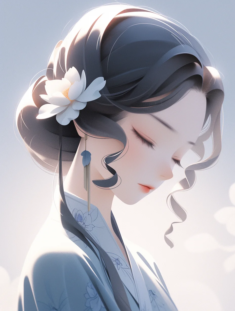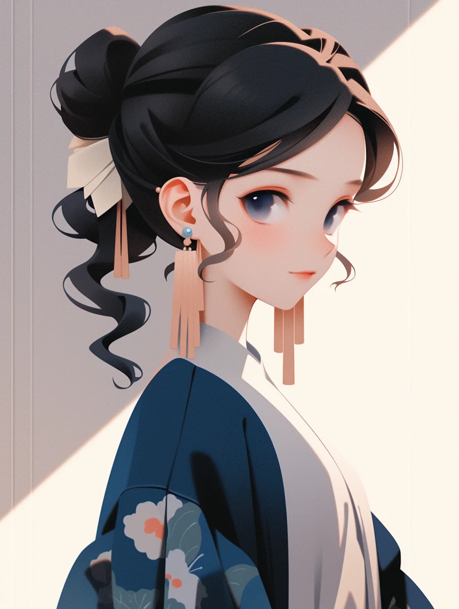 咒语:Realistic 3d cartoon style rendering, Portrait, a cut girl, Chineseicist character illustration, Song dynasty style, minimalism, geometric shapes, melancholic blue clothing, Qiu Ying style --ar 3:4 --s 400 --no triangle