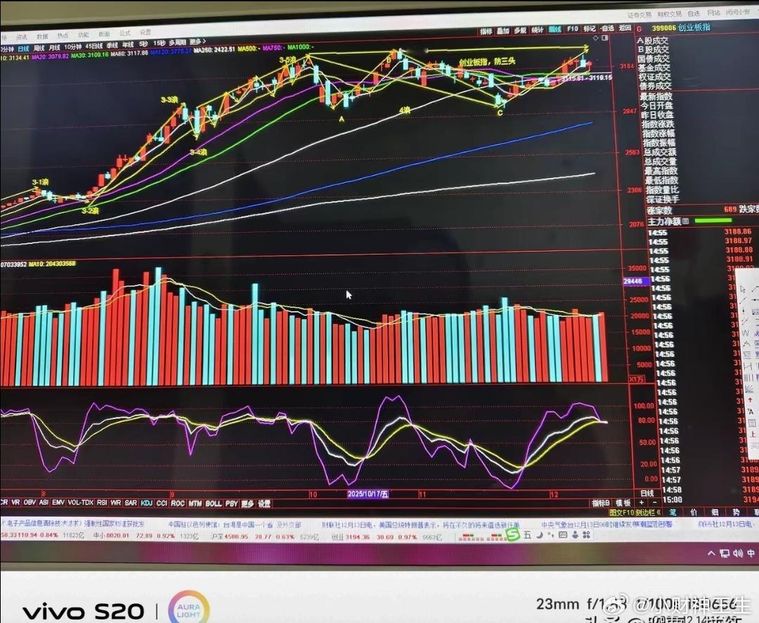 A股下周初预测及月未展望预测下周初走势先得搞清楚指数的浪形结构走势。指数从4034点开始大概率进入到4浪调整中。从3040点的上涨到4034点运行6个多月,4浪调整到上周五仅21个交易日,调整时间远远不够。如果从4034点往下到3816点是A浪下跌,B浪反弹结构还没走出来,大概率向上反弹2一3天,还会向下调整探底。调整时间最快到12月底结束。上证指数周五下探到箱体下边沿获支撑放量收出小阳线,不出意外下周一二应该向上反弹。但是,周五美股三大指数收跌,核心资产人工智能和半导体都是下跌的,周一肯定低开,加仓的可以等个分时低点。下周初反弹不反弹关键看证?证券变成市场调节器,稳定器。证券上周一反弹到60日线遇阻回落5天,指数反弹到20日线遇阻也跟随回落5天。证券大概率回落是小a,5日线处获支撑,下周初应有个小反弹b。所以倾向指数也会跟着反弹。只要有反弹注意寻找减仓点。指数后面一定还会有个C浪下跌,是寻找双底3800点附近?还是寻找120日线支撑在3770点附近?时间最早在12月底完成4浪调整,最少需34个交易日。切记不见C浪大阴线杀跌不抄底。