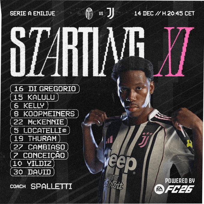 虎扑12月15日讯意甲第15轮,尤文客场挑战博洛尼亚,赛前,双方公布了本场比赛首发名单。