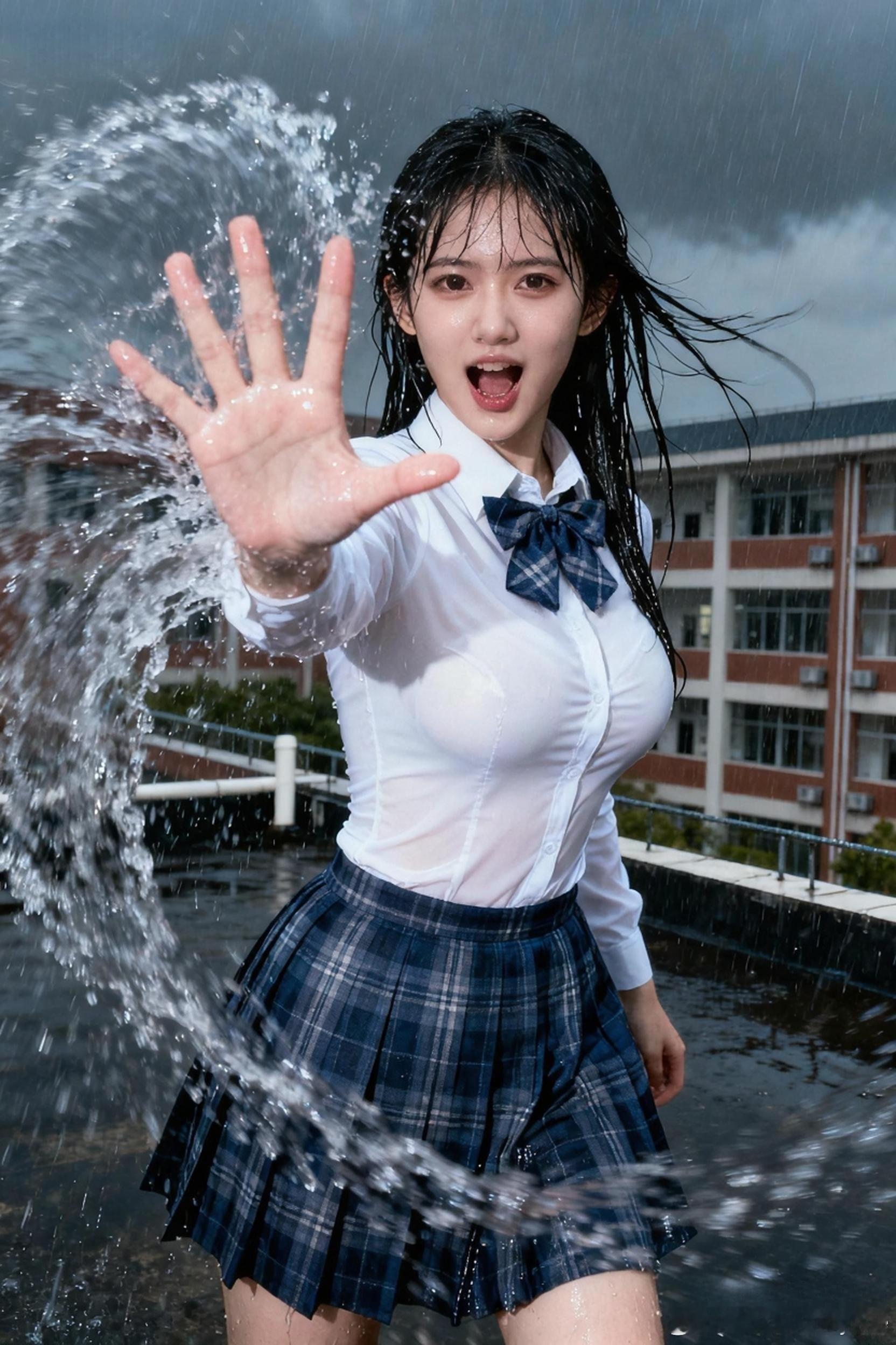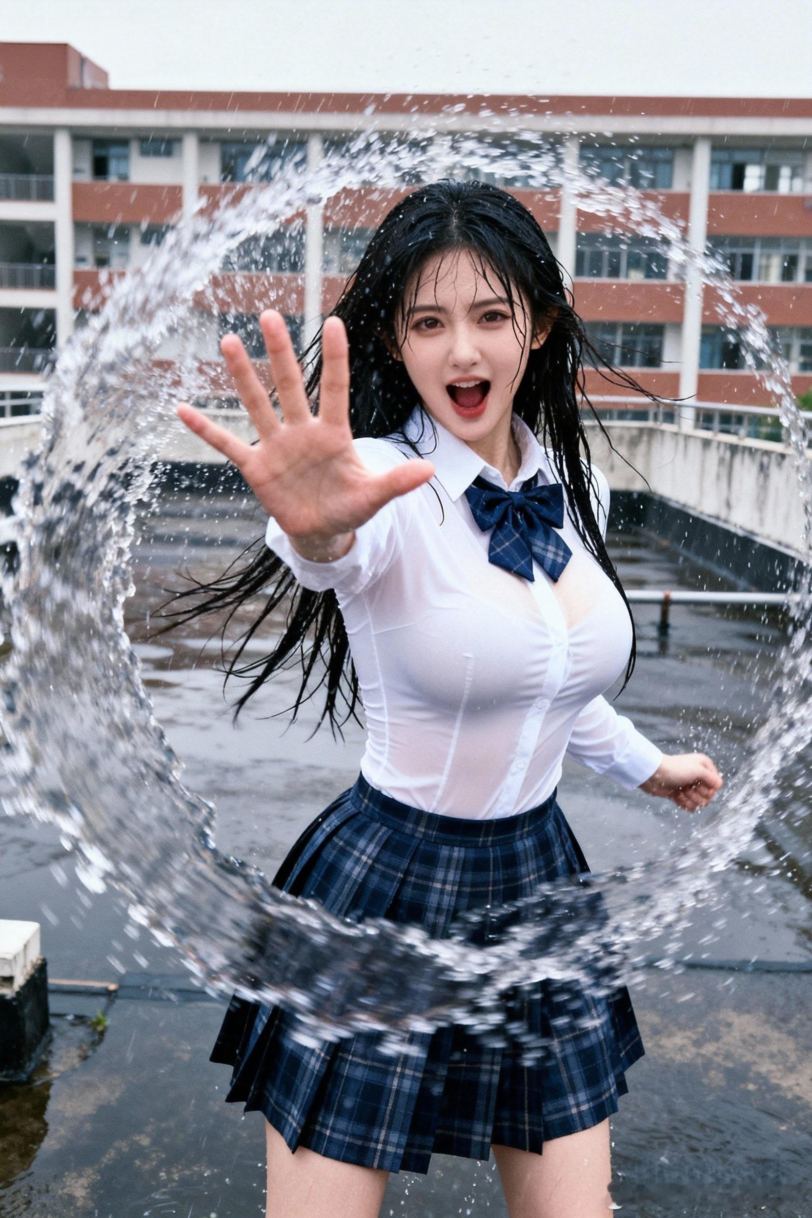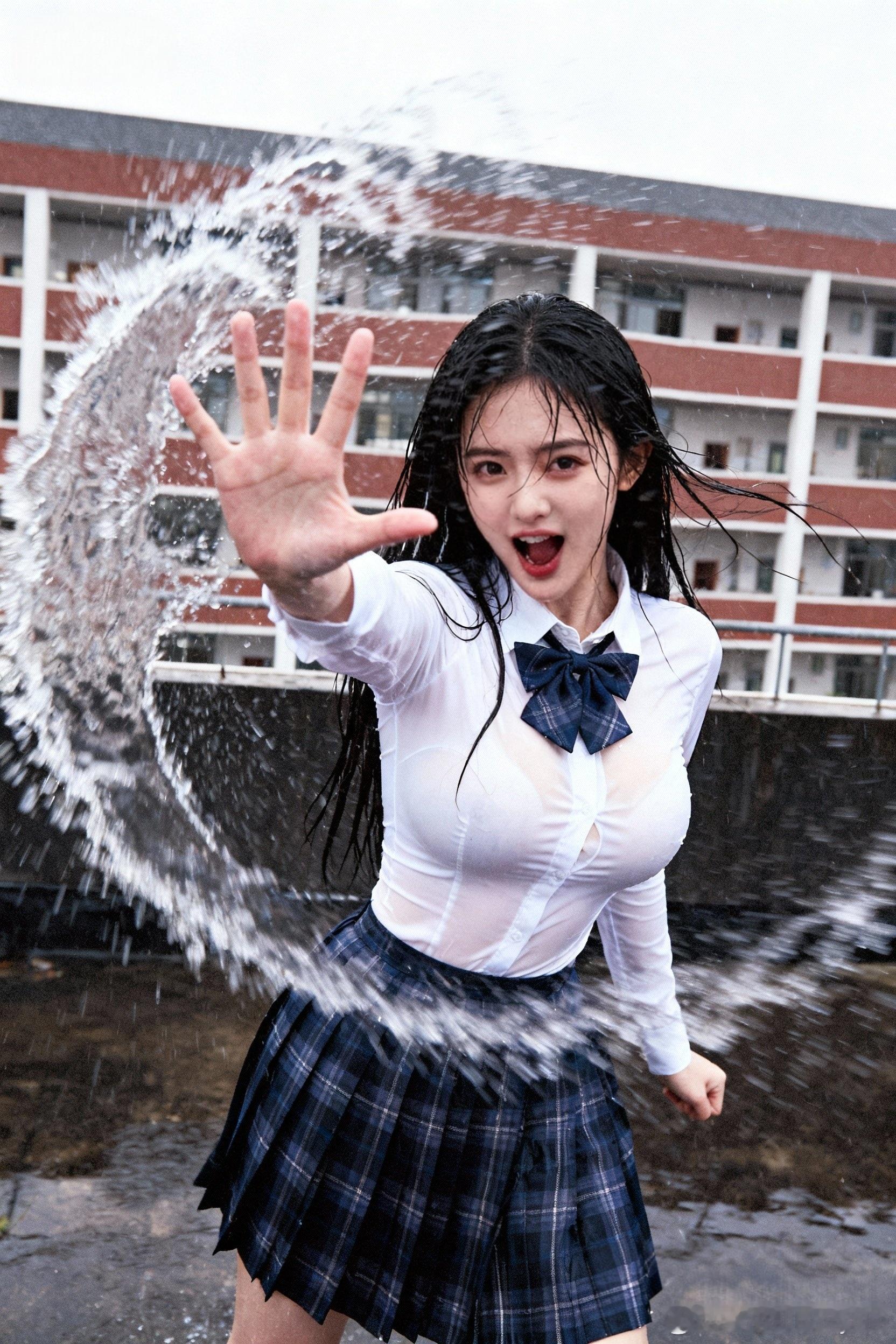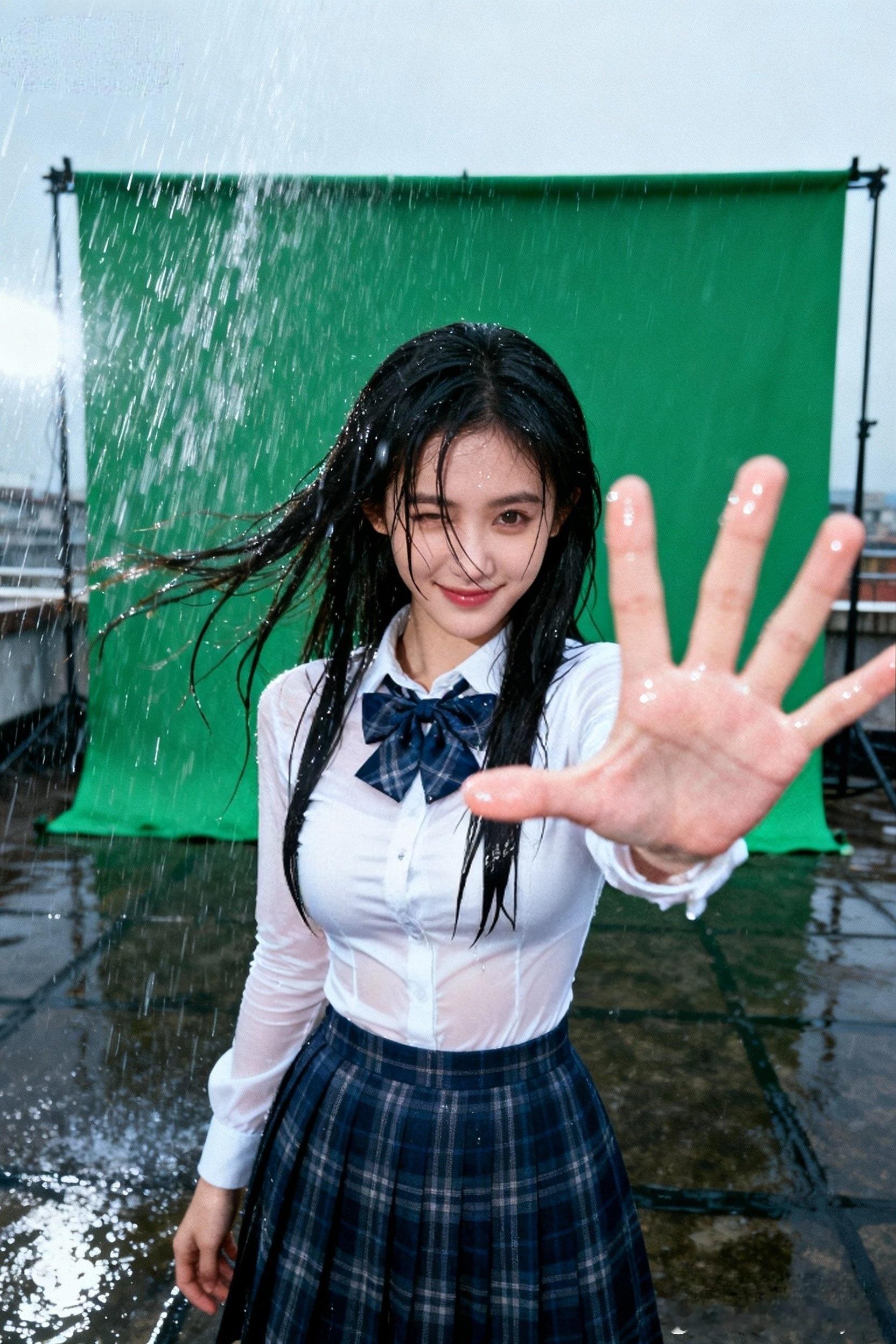 魔法少女开始施法了!最后一张图是花絮这种图片好玩,关键还是绿幕,雨水也是喷水车洒