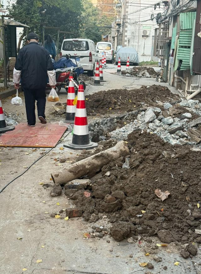 多位居住在施工小区的居民告诉记者,他们并非不理解施工,但施工从开始就与居民存在沟通问题。“早上推开家门走不出去,出门了找不到回来的路”,施工已经成“开盲盒”,没有人知道明天会挖到哪里。市光二村的居民小黑在开挖之前没有得到通知,接到挪车电话时无法及时挪车,只能由施工队使用液压工具挪动,结果造成了车辆磨损。“每天挖管道的方向为什么不提前告诉住户?”小黑很不解。