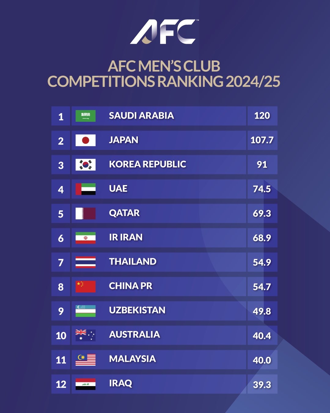 今年5月份,亚足联公布2024/25赛季各协会联赛积分排名,当时中超以54.682分排在亚洲第8,落后泰超对手0.2分。因此26/27赛季开始,中超的亚冠席位从“2+1+1”(2个亚冠精英直通+1个精英附加赛+1个亚冠二级直通)降为“1+1+1”(1个亚冠精英直通+1个精英附加赛+1个亚冠二级直通)。