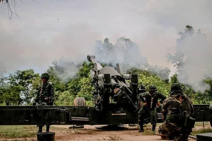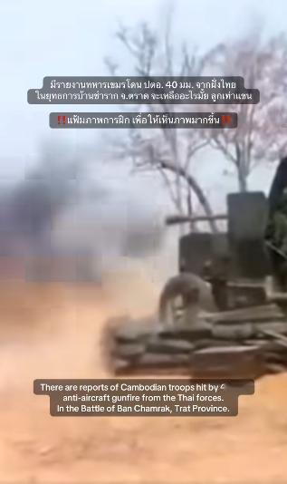 12月14日,泰国第二军区报告了边境地区的交战情况:泰国军队摧毁了10辆柬埔寨坦克(T-55/59D坦克)、64架无人机、1 辆BM-21火箭炮,柬埔寨军队损失181人,同时,在塔昆地区发生了激烈的交战,泰国军队遭遇到包括直线武器、曲线武器和无人机突袭。12月14日,泰国士兵发射155mm大炮,袭击了柬埔寨军队第三支援旅的前线指挥所:一处房子。柬埔寨士兵利用乌冬米猜省的一座寺庙作为军事行动地点,,81式火箭炮发射点,攻击泰国边境地区。赌场当军火库,寺庙当火力点,柬埔寨确实没打下去的本钱。 泰国方面报道称,柬埔寨军队士兵被泰国高射炮打中。泰国军队使用博福斯40毫米高射炮,在特拉特省扫射柬埔寨军队阵地。目前泰国军队将手里的M-198大炮部署前线开火,泰国的大炮的威力和火力打击持续性,比F-16战斗机强多了。按照泰国方面的说法,“155毫米炮吹过空中,是既美丽又可怕的力量的反映”。“先进技术的效果,包括发射了子母弹和高爆弹”。“155毫米炮弹是力量的心脏,现代战场射击摧毁了柬埔寨民兵和种植园”。“炮兵继续统治战场,就像尊严一样,在泰国炮兵的手中,钢铁的力量是通过纪律、知识和所有军队的协调锻造的,以更优雅、稳步、更有力地保护国家的主权”。 泰国军队主要使用美制M109A5自行火炮, 奥地利|GHN 45型45倍口径155毫米加榴炮,ATMG自行卡车炮,M-198牵引式火炮, 这些大炮都拥有40-50公里的射程,GPS导航系统。泰国炮兵还使用了集束子弹,M46子母弹,泰国军队还可以自行生产155毫米子弹。显然战争打下去,对于柬埔寨,一个没有任何军事工业的国家来说,一点好处没有!