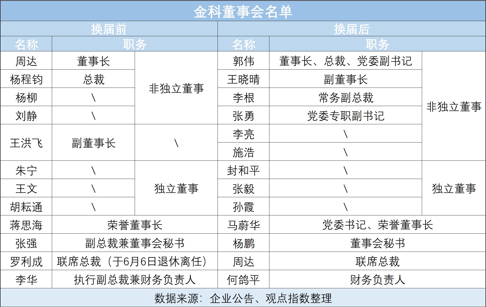 具体来看,郭伟获任金科股份董事长、总裁、党委副书记,王晓晴任副董事长,周达为联席总裁,李根为常务副总裁,张勇为党委专职副书记,杨鹏为董事会秘书,何鸽平为财务负责人。