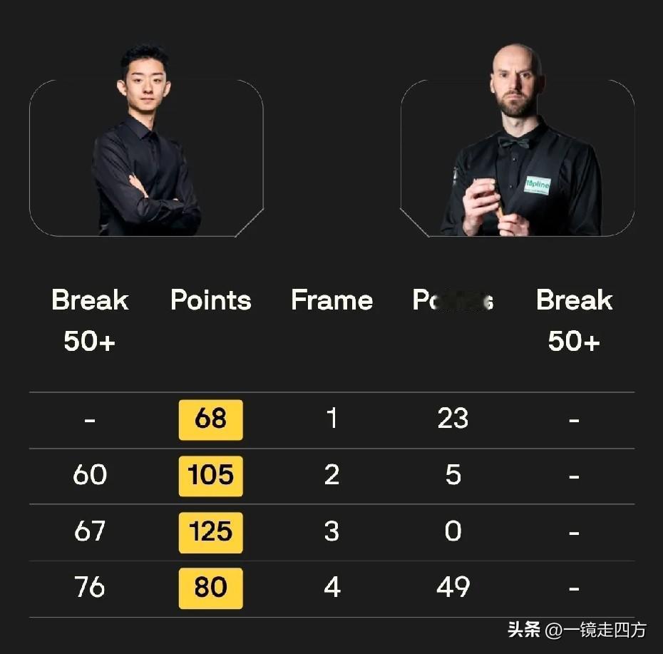 斯诺克苏格兰公开赛首轮,又有4位中国球员取胜晋级,斯佳辉在刚刚结束的比赛中4-3险胜马克·戴维斯,小将蓝裕豪4-1爆冷击败加里·威尔逊,上届亚军吴宜泽4-0零封伯恩斯,袁思俊4-1战胜沃拉斯顿,这样,加上首日取胜的卫冕冠军雷佩凡和张安达,以及因对手退赛直接晋级的赵心童和贺国强,已有8位中国球员进入32强。
