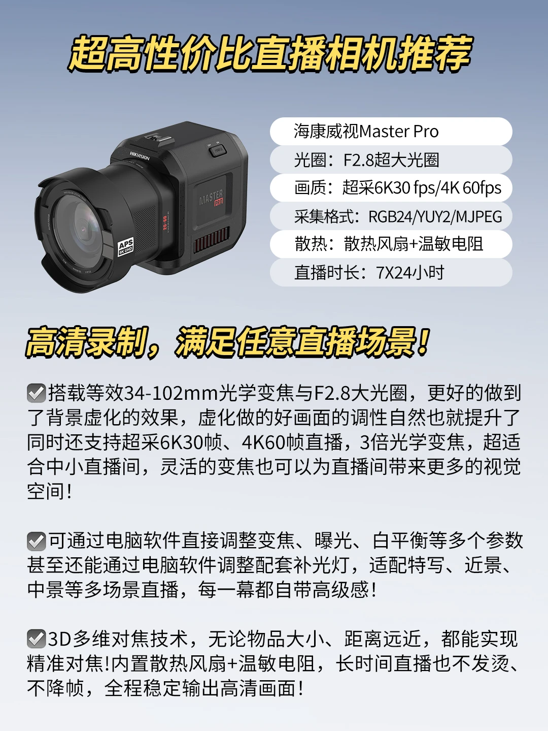 尤其是对画质有高要求的直播间,别再用手机凑合了!闭眼入这台【海康威视Master Pro】国产首款半画幅8K直播相机!
