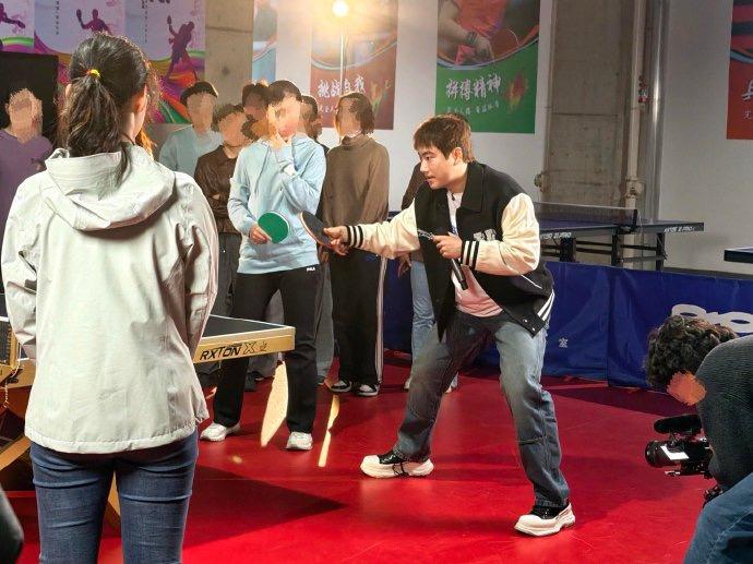 虎扑12月16日讯今天,梁靖崑现身北京电影学院,教学生打乒乓球。