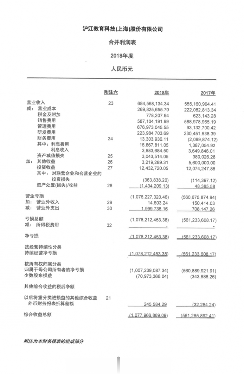 2018年,沪江曾谋求在港交所上市。当时的沪江招股书显示,该公司2015至2017年营收分别为1.85亿元、3.4亿元和5.55亿元,2018年截至5月31日前5月的营收为2.63亿元。不过,与高速增长的营收形成鲜明对比的是,该公司的净亏损在持续增加,2015至2017年分别亏损2.8亿元、4.22亿元和5.37亿元,2018年前5月亏损已达4.6亿元。