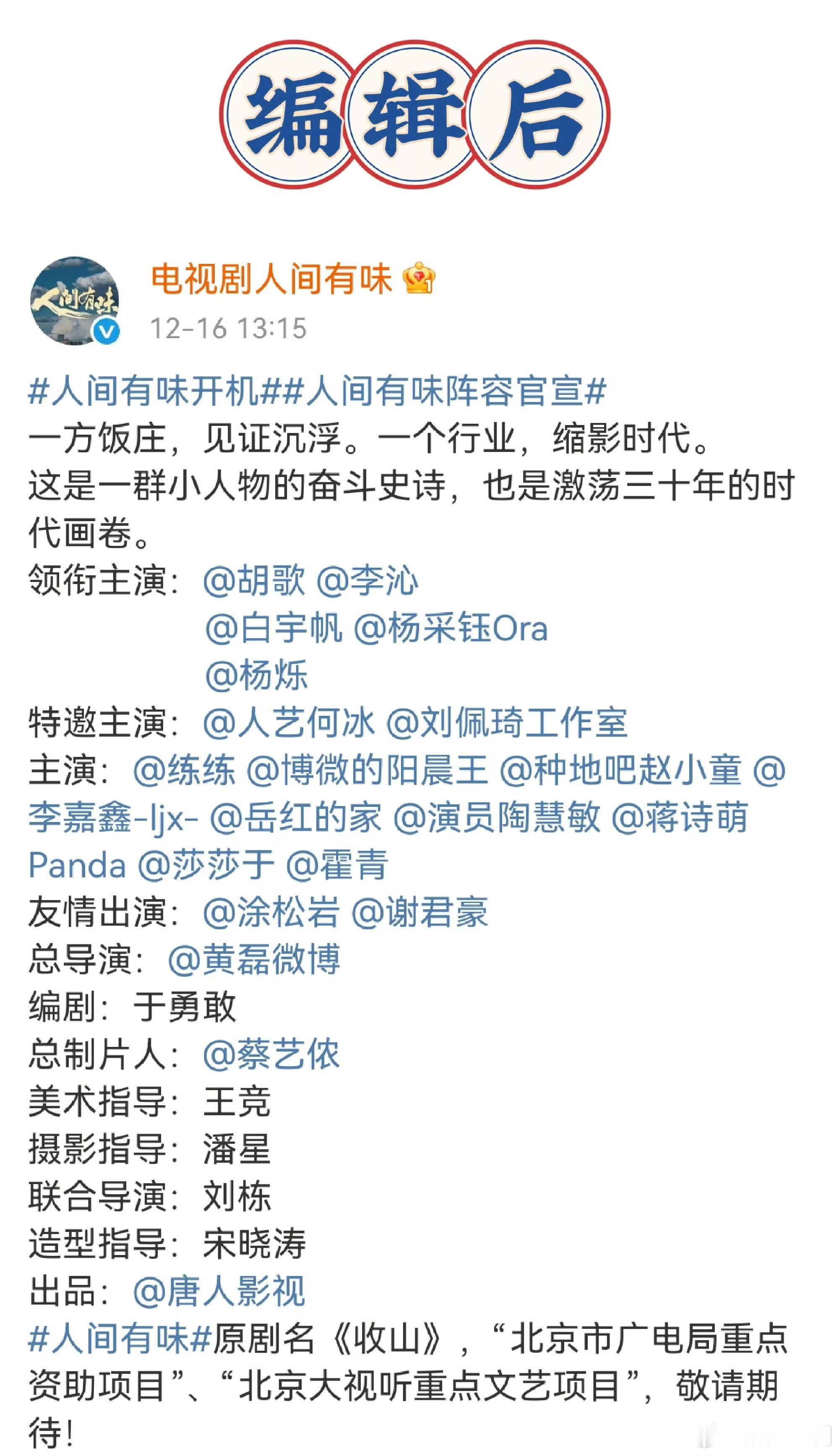 电视剧人间有味开机现场照🔥整个剧组人员都看着挺peaceandlove
