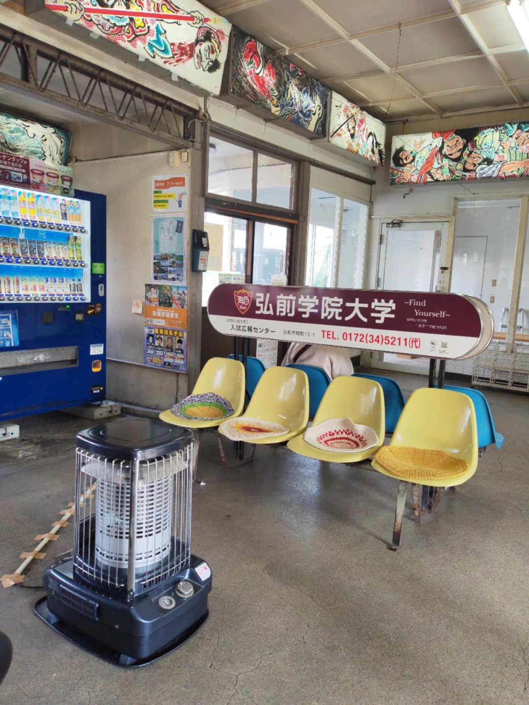 车站内的手写时刻表、老式售票窗口、出站口都保留着昭和时期的模样。候车座位中间摆着的圆形暖炉冬天会点火使用。