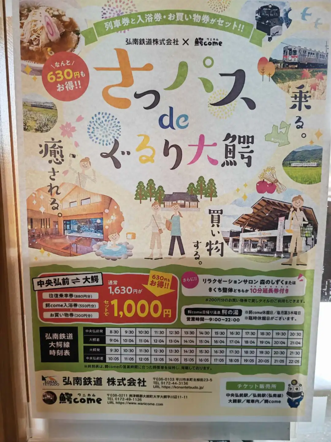 乘坐大鳄线强烈推荐大家买さっパス(见图P16)!非常划算1000日元包括往返车票+鳄come日归温泉入场券+鳄come200日元购物券[哇R]