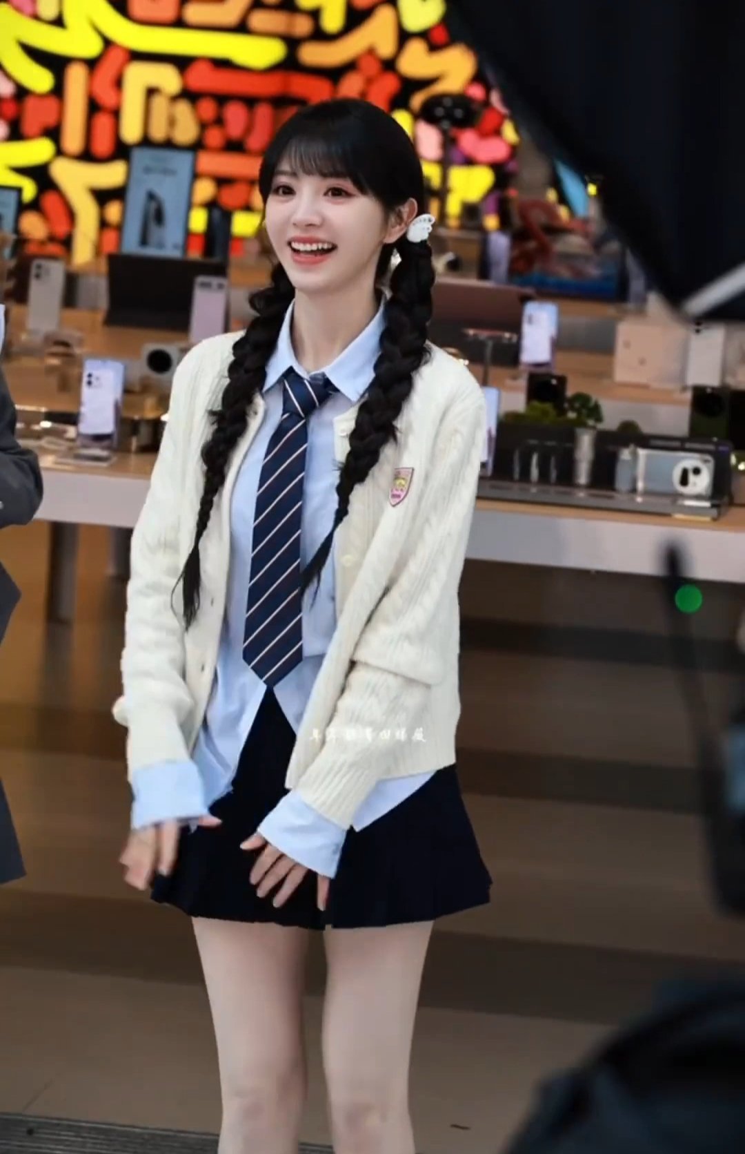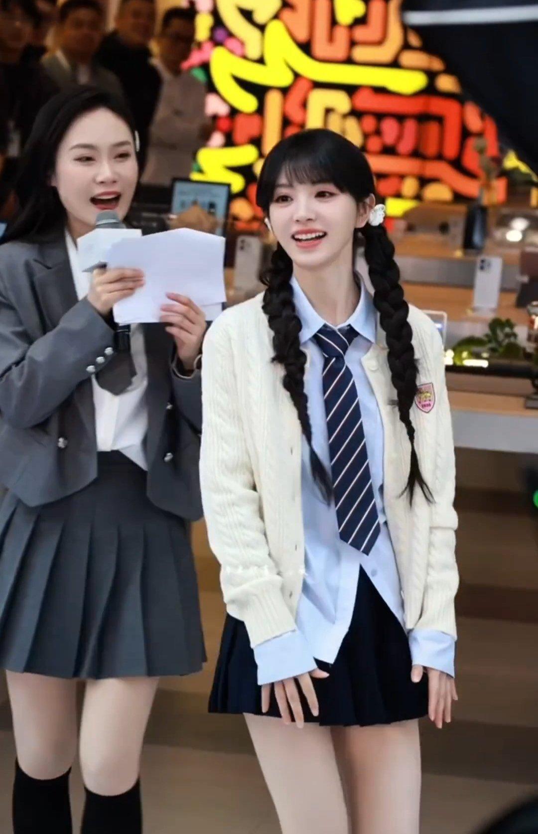 田曦薇今日线下活动直拍,学院风双麻花辫元气少女!