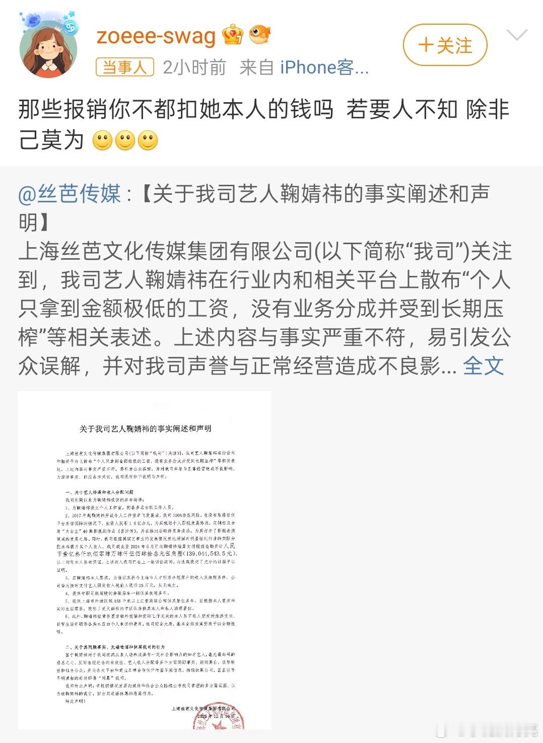前助理为鞠婧祎发声鞠婧祎前助理看起来信誓旦旦的样子,应该不会有假。但现在这个社会谁又能说的准呢?目前是公说公有理,婆说婆有理,如果想迅速占据舆论高点,不妨拿出证据,毕竟雁过留痕总会有蛛丝马迹的不是吗?