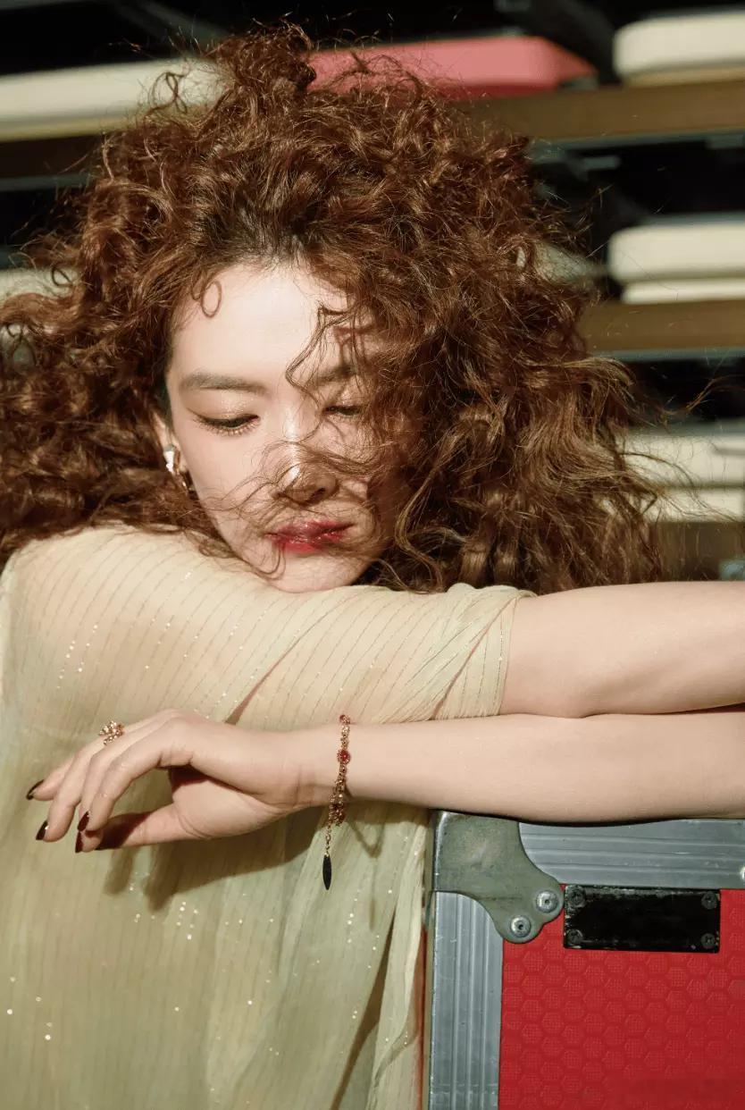 分享娱乐分享娱乐 陈昊宇穿条纹荷叶边纱裙浪漫复古 羊毛卷造型精准平衡野性与优雅