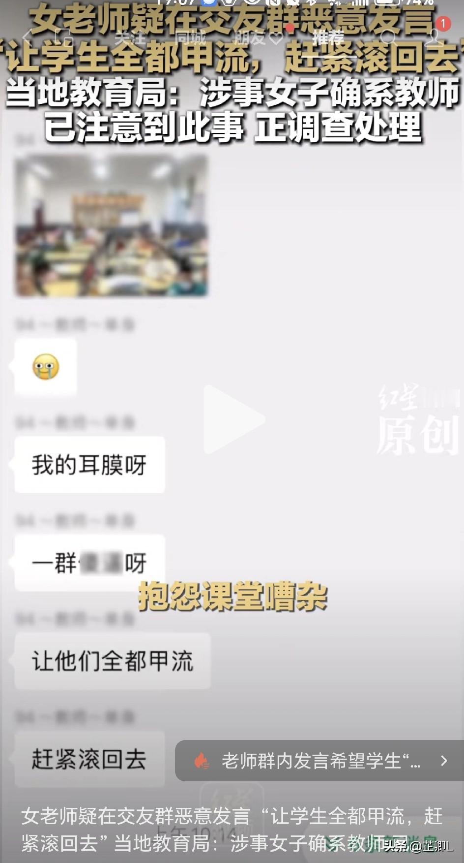 小学教师在交友微信群发“盼学生全得甲流”,自称“有编制不怕举报”,教育局出手了! “让他们全都甲流,赶紧滚回去!”你敢相信,这话竟出自一位小学音乐老师的微信群发言? 昨天(12月16日),陕西铜川某学校的一位音乐老师,因为在百人交友微信群里“语出惊人”,彻底火了。短短几句话,直接把全国网友都看懵了。 这事儿最开始是在网上被曝光的。一张微信群聊天截图里,一位备注显示为“李老师”的用户,在群里对学生说出极其刺耳的话: 先是称学生是“一群XX”,接着直接来了一句“让他们全都甲流,赶紧滚回去”。这话一出,群里有人立刻提出质疑。 没想到,这位老师非但不觉得有问题,反而理直气壮地回复:“工资到手就行”、“巴不得外行举报”。 最让人无语的是,她最后还补了一句——“我有编制”。 好家伙,一句“我有编制”,瞬间把网友的火气点炸了,连夜“破案”。 聊天记录一曝光,热心网友立刻行动起来。当晚就有网友扒出了一个疑似属于这位李老师的社交媒体账号。 不过等大家赶去围观时,发现账号已经火速设成了私密状态。 这操作,颇有点“网上重拳出击,现实火速隐身”的味道。 事情闹大后,当地教育局反应很快。 12月16日,铜川新区教育分局正式回应:涉事教师确为该校一年级音乐教师李某某,目前已经对她进行停职处理,并表示会进一步调查,后续公布结论。 学校方面的态度也很明确,相关负责人对媒体表示“很气愤”,承诺一定会严肃处理。 网友炸锅: 这事儿在评论区彻底炸了: “编制不是‘免死金牌’!” “有编制就飘成这样?编制是让你好好教书,不是让你欺负孩子的!” “盼自己学生生病,这心理得多阴暗?还当什么老师?” “建议查查平时是怎么上课的,这种心态能教好学生?” “既无道德,又无师德,可怜的孩子们!” “这种人应该直接开除!” 也有网友冷静指出:“个别老师不能代表全体教师,但这种事必须严惩,才能维护教师队伍的形象。” 虽然当事人已经停职,但这件事留给我们的思考还有很多。 为什么个别教师会说出如此缺乏师德的话?“编制”在某些人眼里,怎么就变成了肆无忌惮的底气?教师的心理健康和职业素养监管,是不是也该跟上? 教育不是流水线,老师也不是流水线工人。面对一个个鲜活的孩子,没有爱心和耐心,光有个“编制”外壳,终究是走不远的。 目前,调查还在进行中。等待这位李老师的,恐怕不止是停职那么简单。 对于这种“有编制就任性”的老师,你觉得该怎么处理?欢迎在评论区说出你的看法! 信息来源于红星新闻,侵联删!