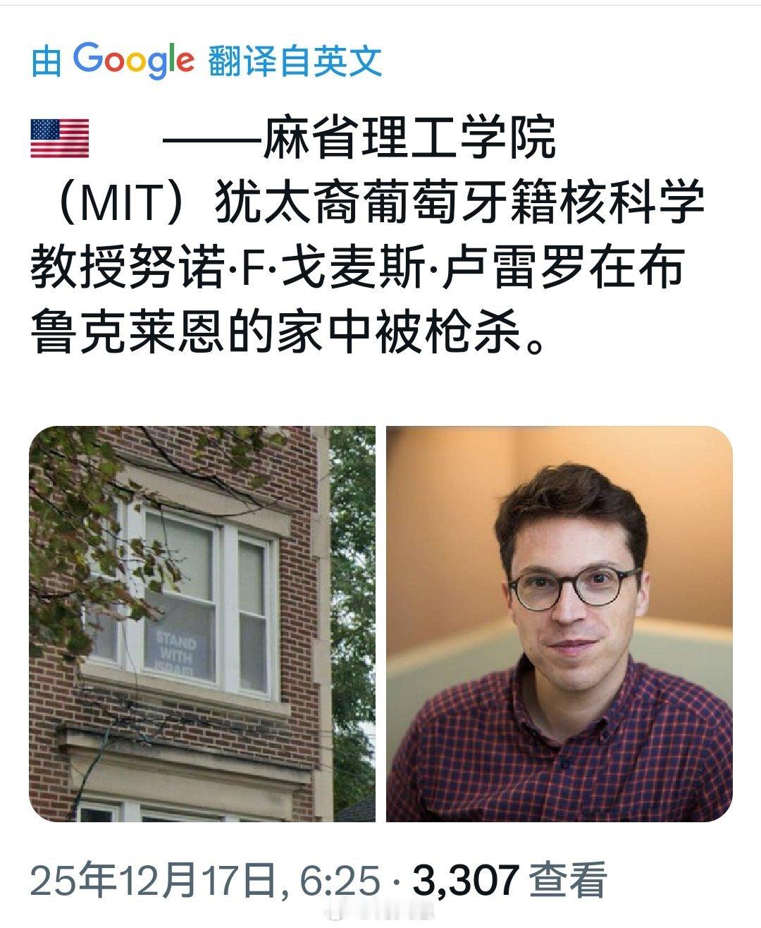 (突发消息)一位 47 岁的犹太裔麻省理工学院核科学家教授——努诺·洛雷罗——在其位于马萨诸塞州布鲁克林的家中被谋杀身亡。海外新鲜事何天恩