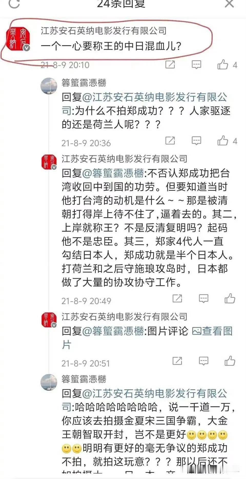 请问哪部电影出品方,对收复台湾的民族英雄郑成功的评论是,一心谋独的中日混血儿来着?