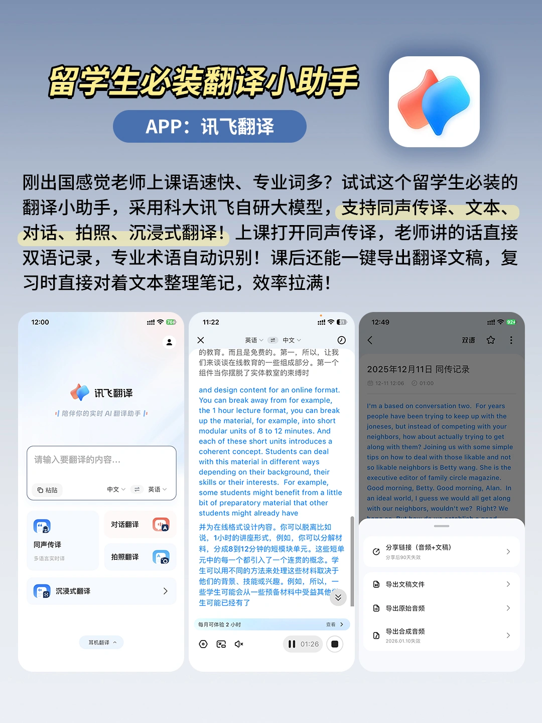 对学生党敲友好!文本、语音、同传、拍照翻译都有!同传可放译文,课后复习超轻松