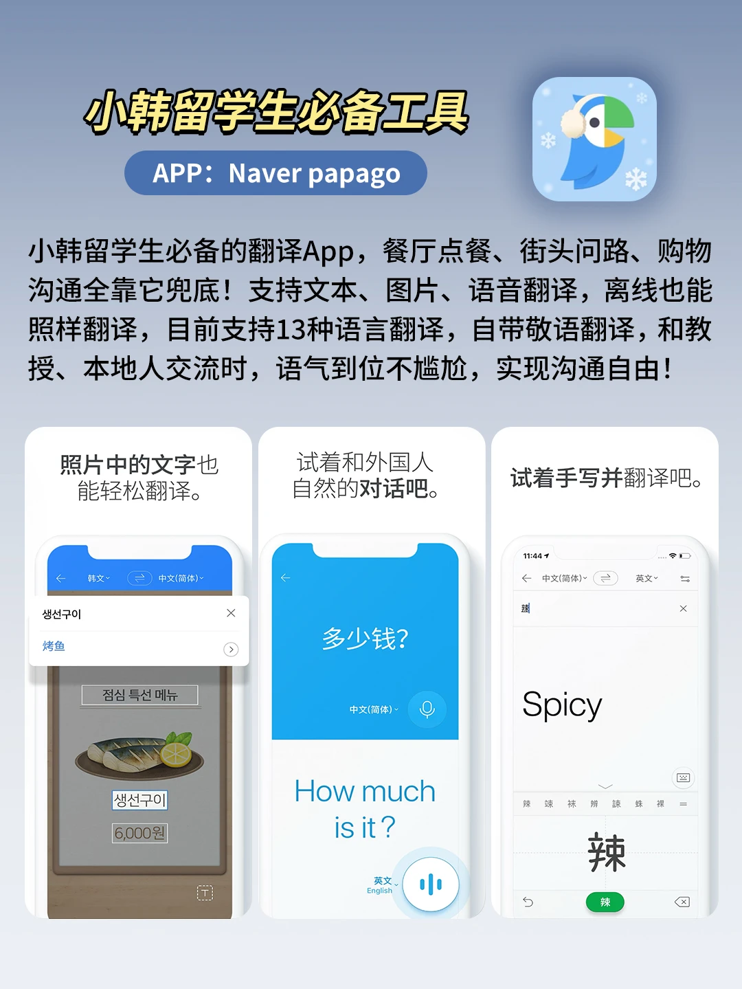 小韩留学生必备!支持文本、图片、语音翻译,离线可用,目前支持13种语言,自带敬语翻译,与教授、本地人交流语气到位不尴尬