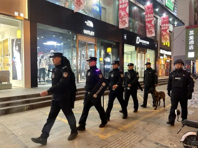 基于精准研判,巡特警支队实行“定点值守+动态巡逻”“便衣跟随+公开震慑”防控模式,综合运用携犬步巡、武装步巡、摩托车巡、无人机巡、视频巡等多种手段,在重点时段、重点区域加密巡逻频次,有效挤压犯罪空间。