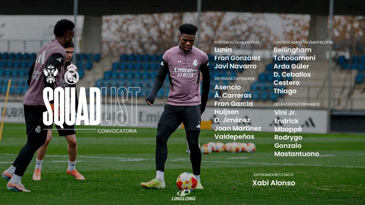 直播吧12月17日讯北京时间明天凌晨4点,皇马将在国王杯32强战中客场对阵塔拉维亚。皇马公布了此役的球员名单。库尔图瓦、吕迪格、巴尔韦德、迪亚斯(参加非洲杯)缺席。