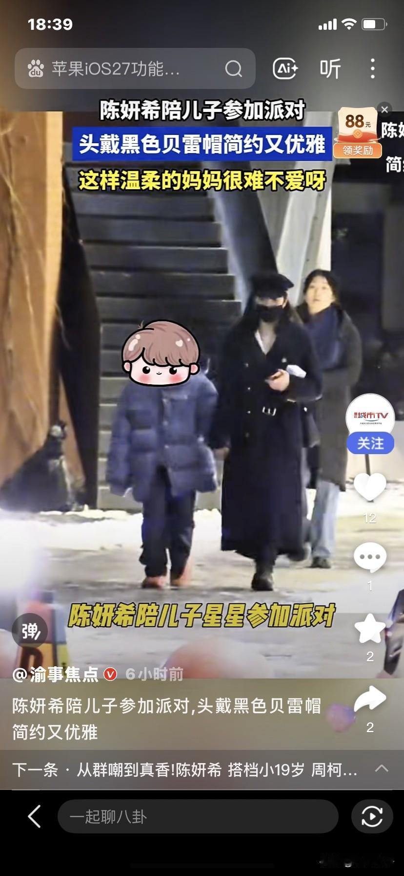 陈妍希陪8岁儿子参加派对!42岁穿小香风嫩成姐姐,盯娃眼神藏不住母爱 近日,42岁的陈妍希被拍到现身北京某亲子派对,全程陪伴儿子小星星参与活动,母子俩自然温馨的互动画面刷爆社交平台,网友纷纷直呼“这才是单亲妈妈的最优解”!褪去明星光环的她,化身“盯娃狂魔”,每一个细节都透着藏不住的温柔。 当天陈妍希的造型堪称“辣妈模板”:米白色小香风外套搭配格纹百褶裙,脚踩5厘米裸靴,既保持了优雅质感,又透着满满的活力。42岁的她状态好到惊人,高清镜头下皮肤透亮紧致,笑起来时标志性的梨涡依旧甜美,和其他家长围坐聊天时,挺拔的颈线和温婉的气质格外亮眼,完全看不出已是学龄儿童的妈妈。不过比起亮眼穿搭,更吸睛的是她对儿子的专注——和家长们闲聊时还会偶尔刷手机,但只要小星星一出现,她的视线立刻锁定儿子,秒变“星星眼”,起身时自然弯腰整理孩子的衣领,耐心听他分享派对上的游戏趣事,嘴角的笑容藏都藏不住。 派对结束后,陈妍希套上黑色毛呢大衣保暖,顺手牵起儿子的小手并肩前行,路灯下一大一小的身影低声热聊,氛围格外治愈。8岁的小星星身高已经窜到妈妈肩膀,穿着黑色蓬松棉服软乎乎的,虽然正脸被卡通头像遮挡,但露出的浓眉大眼和内敛的气质,一眼就能看出遗传了爸爸陈晓的高颜值。一路上母子俩有说有笑,陈妍希还时不时侧头回应儿子的话题,完全沉浸在专属的亲子时光里,母爱几乎要溢出屏幕。 其实这已经不是陈妍希第一次因“高质量带娃”圈粉。离婚后小星星一直跟随她生活,即便工作再忙,她也从未缺席儿子的成长:带他看陆虎演唱会、一起滑雪游泳、陪他做手工玩游戏,甚至为了帮性格内向的儿子交朋友,特意和谢楠一家组织“亲子日”,设计“交换背包”游戏帮他打开心扉。谢楠也曾在综艺中爆料,陈妍希的手机屏保都是儿子弹吉他的视频,足见孩子在她心中的分量。 更难得的是,陈妍希和陈晓达成了“离婚不离责”的默契,成为网友眼中的“模范育儿合伙人”。陈晓会固定每周三陪儿子上马术课,而陈妍希就蹲在围栏外当专属摄影师,把儿子28次训练的进步剪成vlog;她自己常穿199元的平价卫衣,给儿子买的却是400元的有机棉T恤,只因“孩子皮肤吸收毒素是成人三倍”,这些接地气的育儿细节,让她收获了“用心妈妈”的口碑。 从《那些年》里的国民初恋沈佳宜,到如今温柔细腻的全能妈妈,陈妍希用行动证明,女性最美的模样从来都不止一种。她既在事业上保持着中年翻红的活力,又在家庭中给予孩子满满的安全感,这种在工作与育儿间从容平衡的状态,难怪会让网友感叹“被陈妍希的母爱戳中了”“这才是离婚后对孩子最好的守护”。 看着小星星在妈妈的陪伴下阳光成长,既能在派对上尽情玩耍,又能在父母的默契守护中感受温暖,或许这就是育儿最美好的模样——无关婚姻状态,只关乎用心陪伴与责任担当。而陈妍希的故事也告诉我们,好妈妈从不需要完美人设,那些藏在细节里的牵挂与付出,才是最动人的母爱证明。