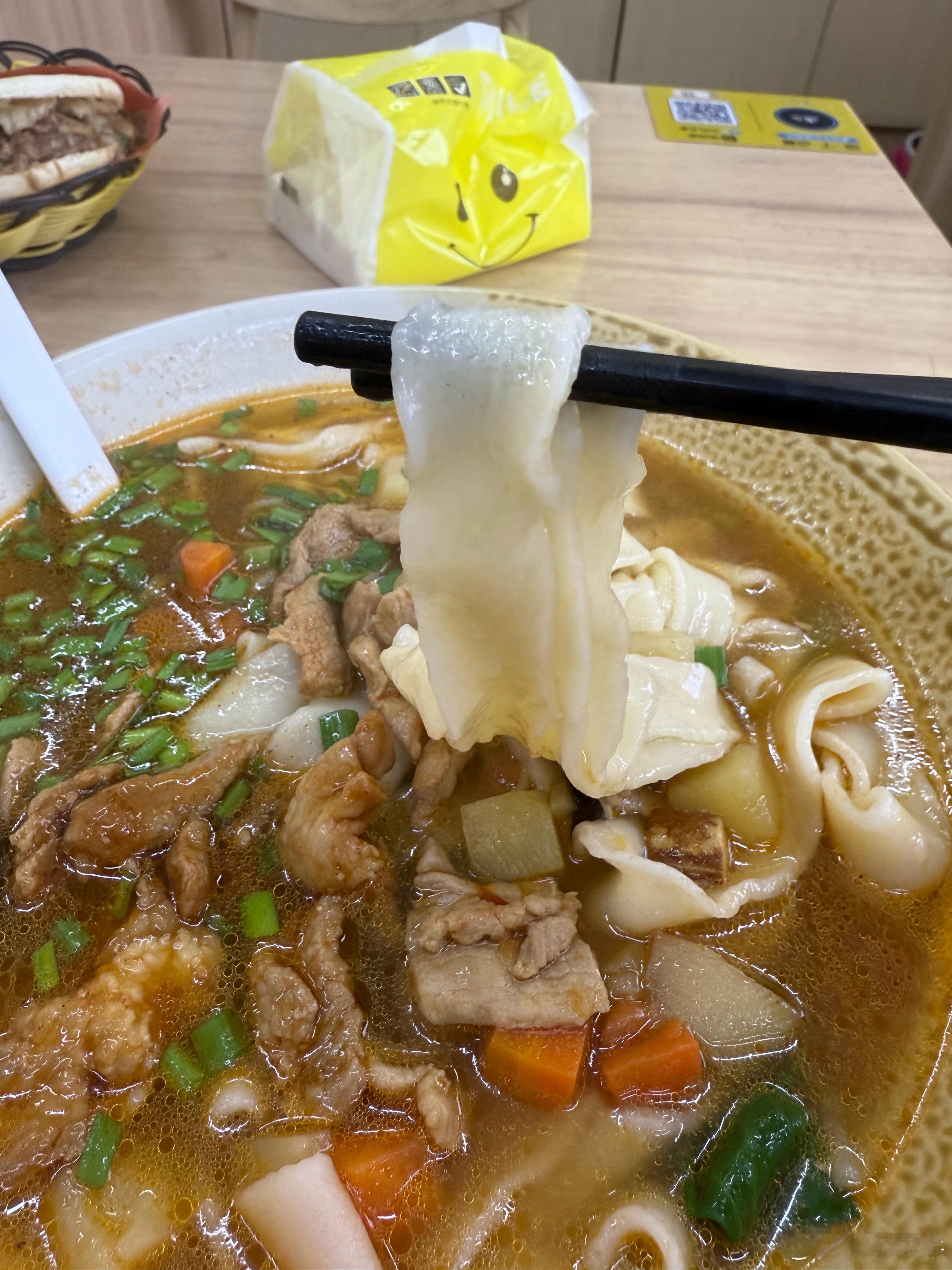 一碗杭州不太正宗的臊子面➕肉夹馍今天碳水爆炸,天冷了,来上一碗这样热火的臊子面,有荤有素、红油红油的,嘴巴凑到碗边,先吸溜上一口酸汤,妈呀!酸辣开胃,一下子暖到脚底底!再挑上几丝面吸入嘴中,薄筋光,妥妥的“一口入魂”,滋润感爆棚!你们晚上吃啥了?牛其林苹果牛