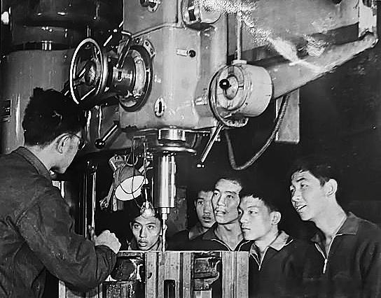 1972年10月11日—30日,全国篮球分区比赛(昆明赛区)在云南省昆明市举行。组委会安排了50%的比赛到37个基层单位进行。图1为广东队赛前向昆钢五号高炉的工人同志虚心学习,图2为运动员赛后参观昆明机床厂。