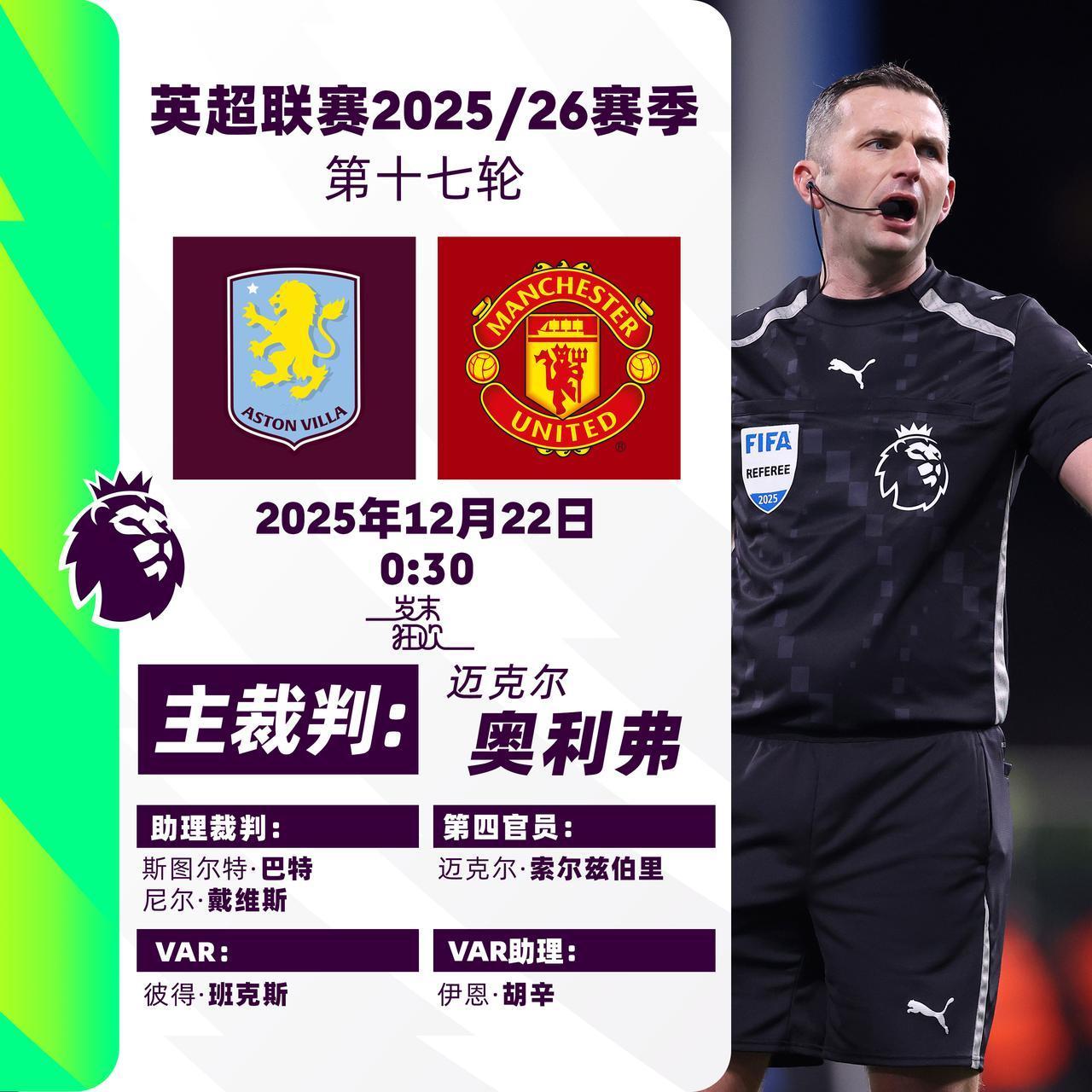 2025/26赛季英超联赛第十七轮主裁判名单 焦点战: 热刺 v 利物浦 主裁判:约翰·布鲁克斯 阿斯顿维拉 v 曼联 主裁判:迈克尔·奥利弗 【纽卡斯尔联v切尔西】主裁判:安迪·马德利 【伯恩茅斯v伯恩利】主裁判:克里斯·布鲁克斯 【布莱顿v桑德兰】主裁判:达伦·英格兰 【曼城v西汉姆联】主裁判:保罗·蒂尔尼 【狼队v布伦特福德】主裁判:马修·多诺霍 【埃弗顿v阿森纳】主裁判:萨姆·巴罗特 【利兹联v水晶宫】主裁判:托马斯·布拉摩尔 【富勒姆v诺丁汉森林】主裁判:安东尼·泰勒