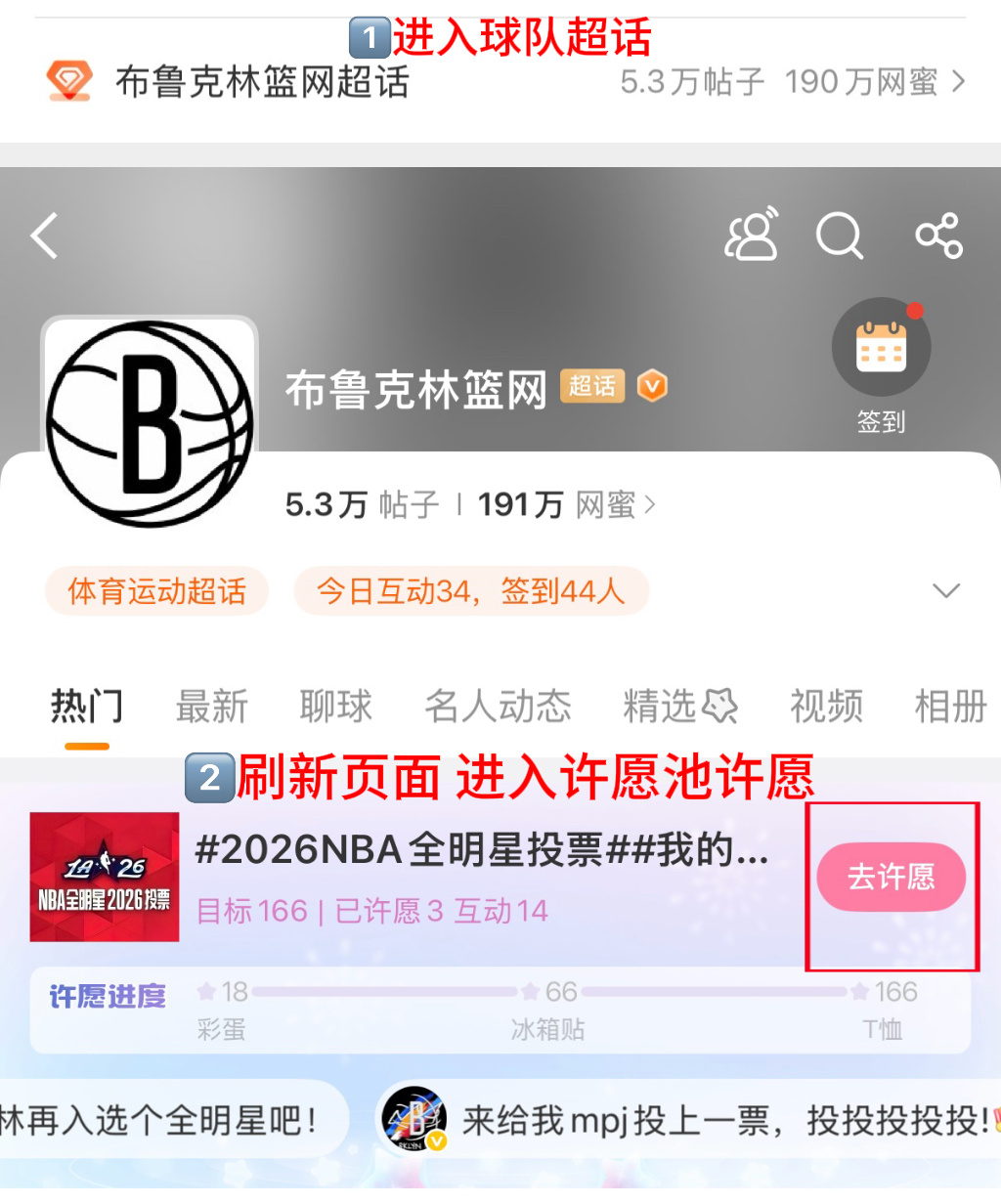 投!可以顺便进超话许愿池许个愿!我的愿望很简单,求求前三顺位给安排安排布鲁克林篮网2026NBA全明星投票我的NBA全明星第一票