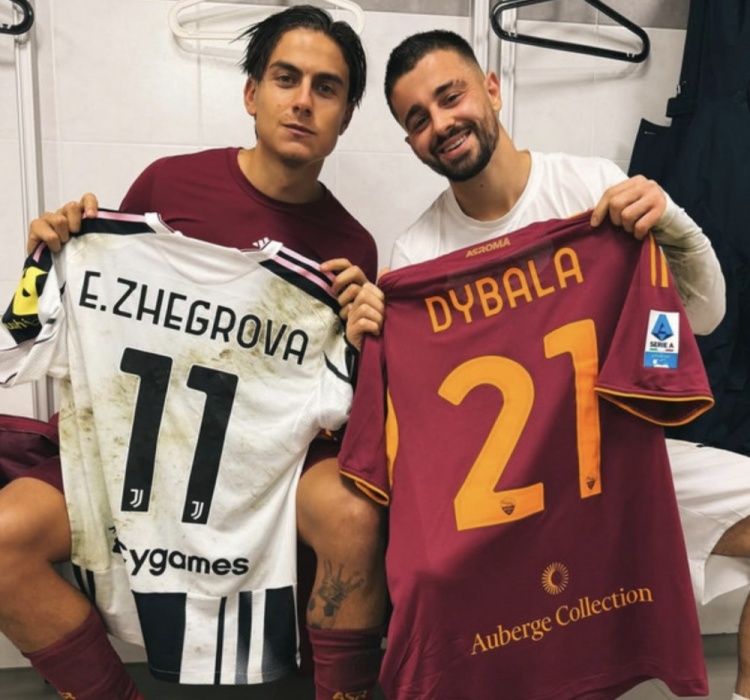 赛后迪巴拉还和尤文球员热格罗瓦交换了球衣,两人在更衣室内合影留念。