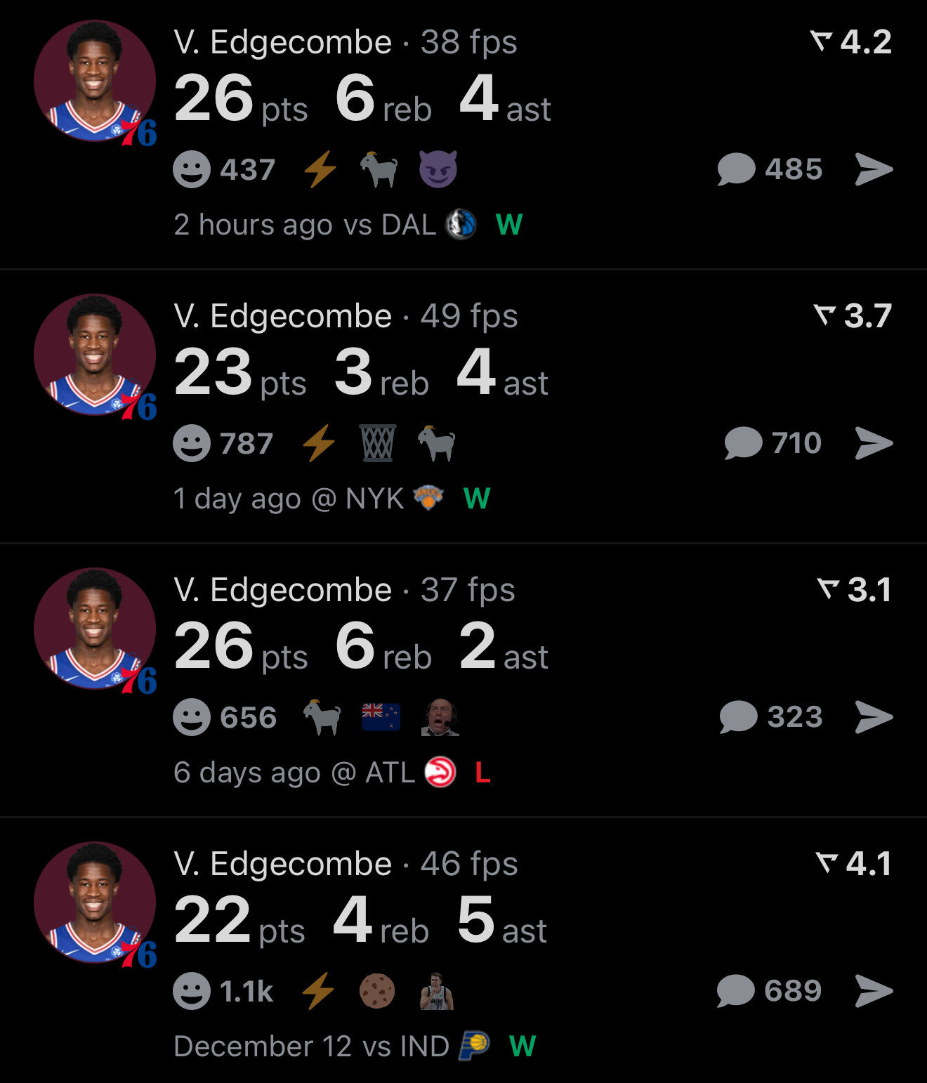 弗拉格18岁的最后一场比赛,24分4篮板3助攻,他以连续4场20+迎来了自己的19岁生日。19岁之前生涯总分526分历史第三(仅次于詹科)。但今晚独行侠输给了76人,对面VJ也完成连续4场20+,他是76人队史做到这一点最年轻的后卫。独行侠vs76人NBA