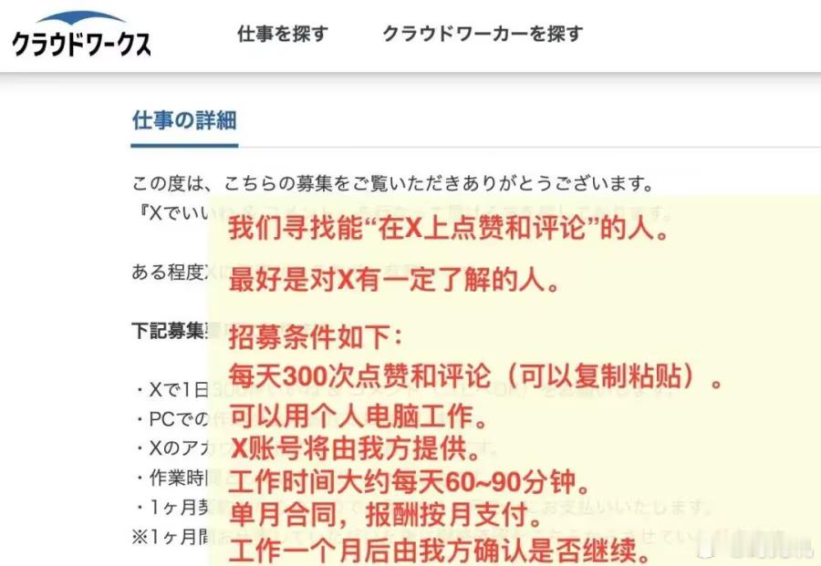日网络水军发条视频最少2000日元没想到都是生意啊!现在都是公开招聘了?咨询一下