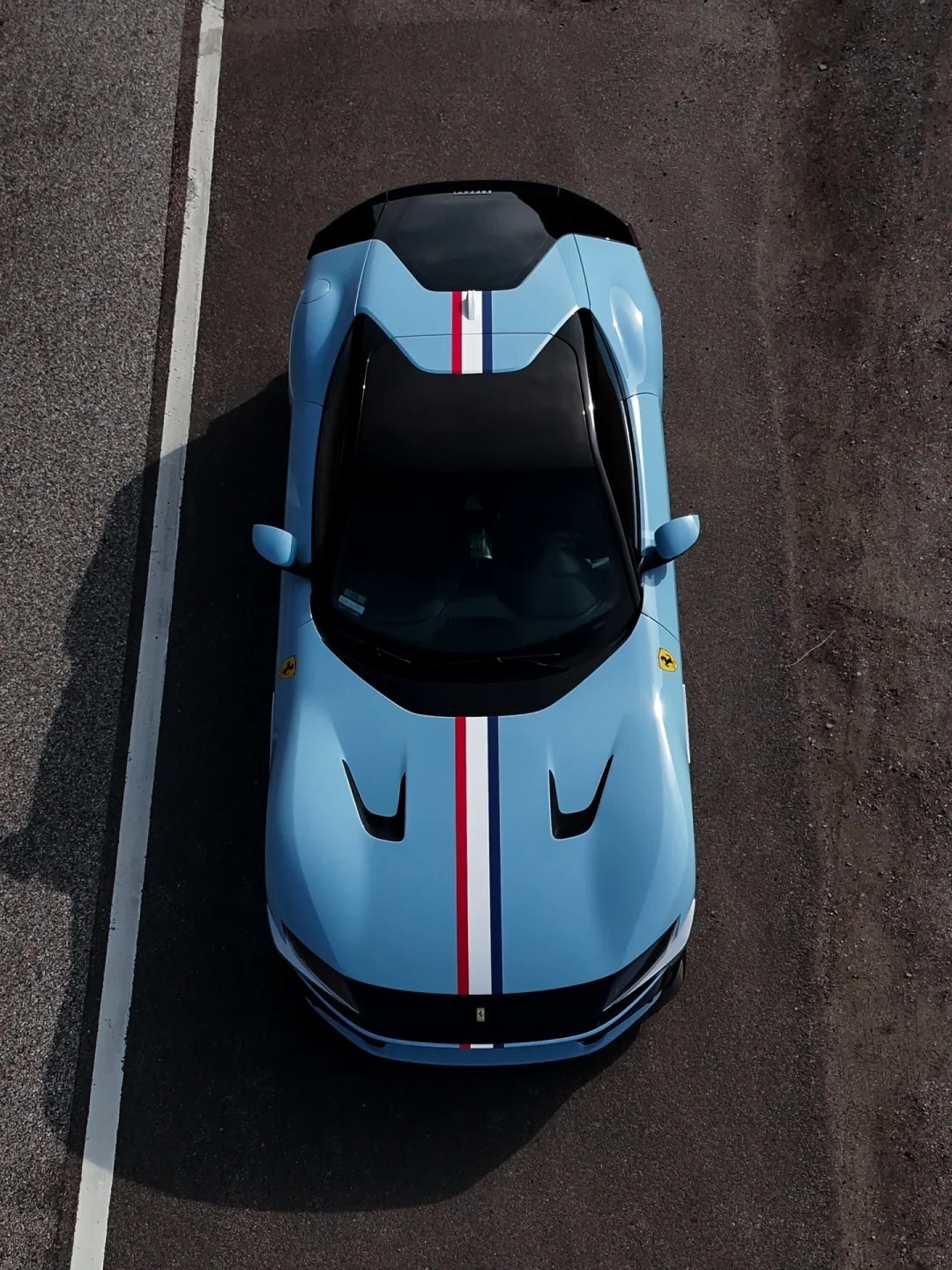 天蓝色涂装的法拉利12Cilindri,拉花更是点睛之笔绝美车片