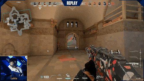 第十七回合:浴室配合A小同时进攻,Jinggg三杀落袋,PRX扩大比分优势