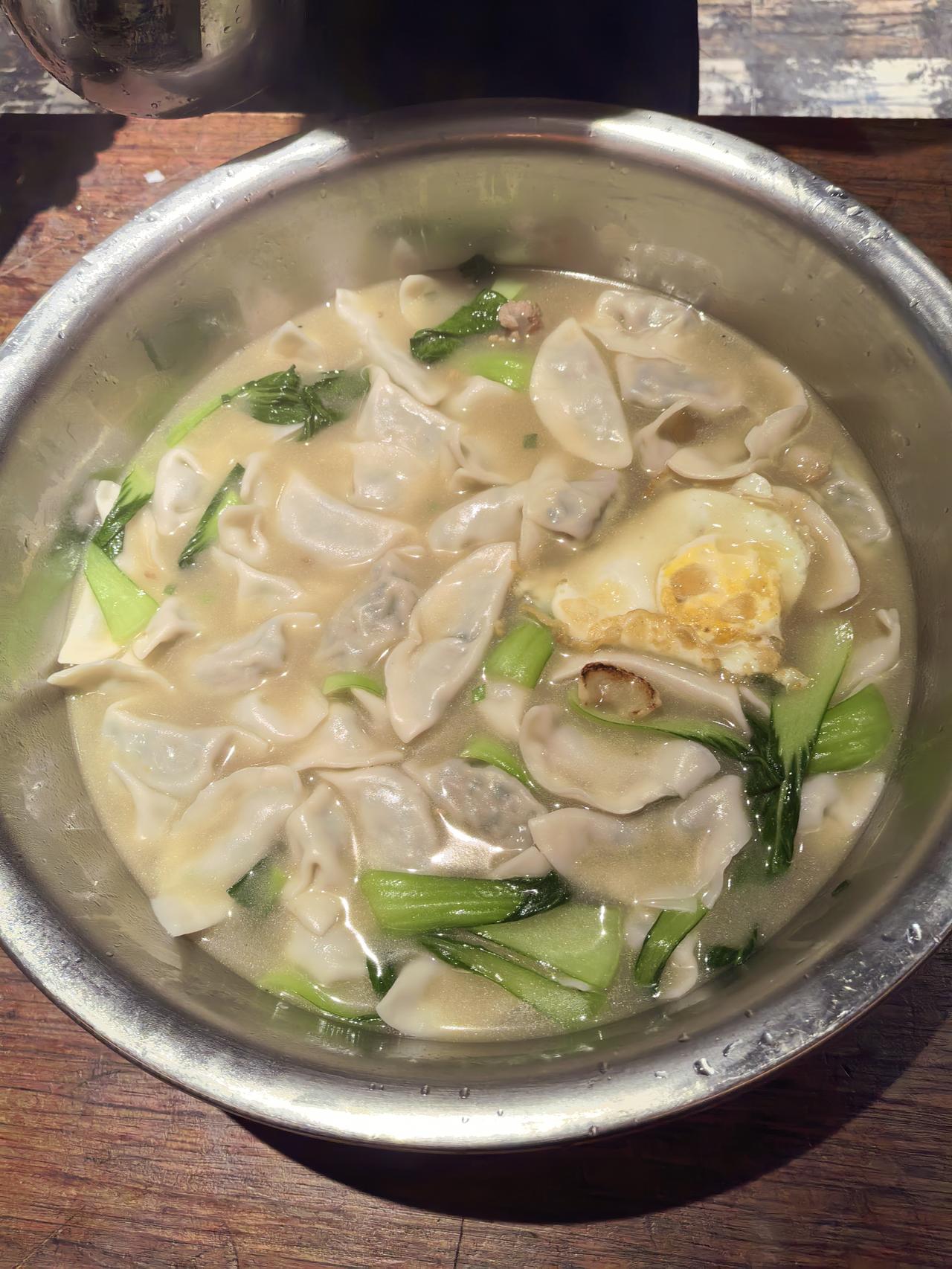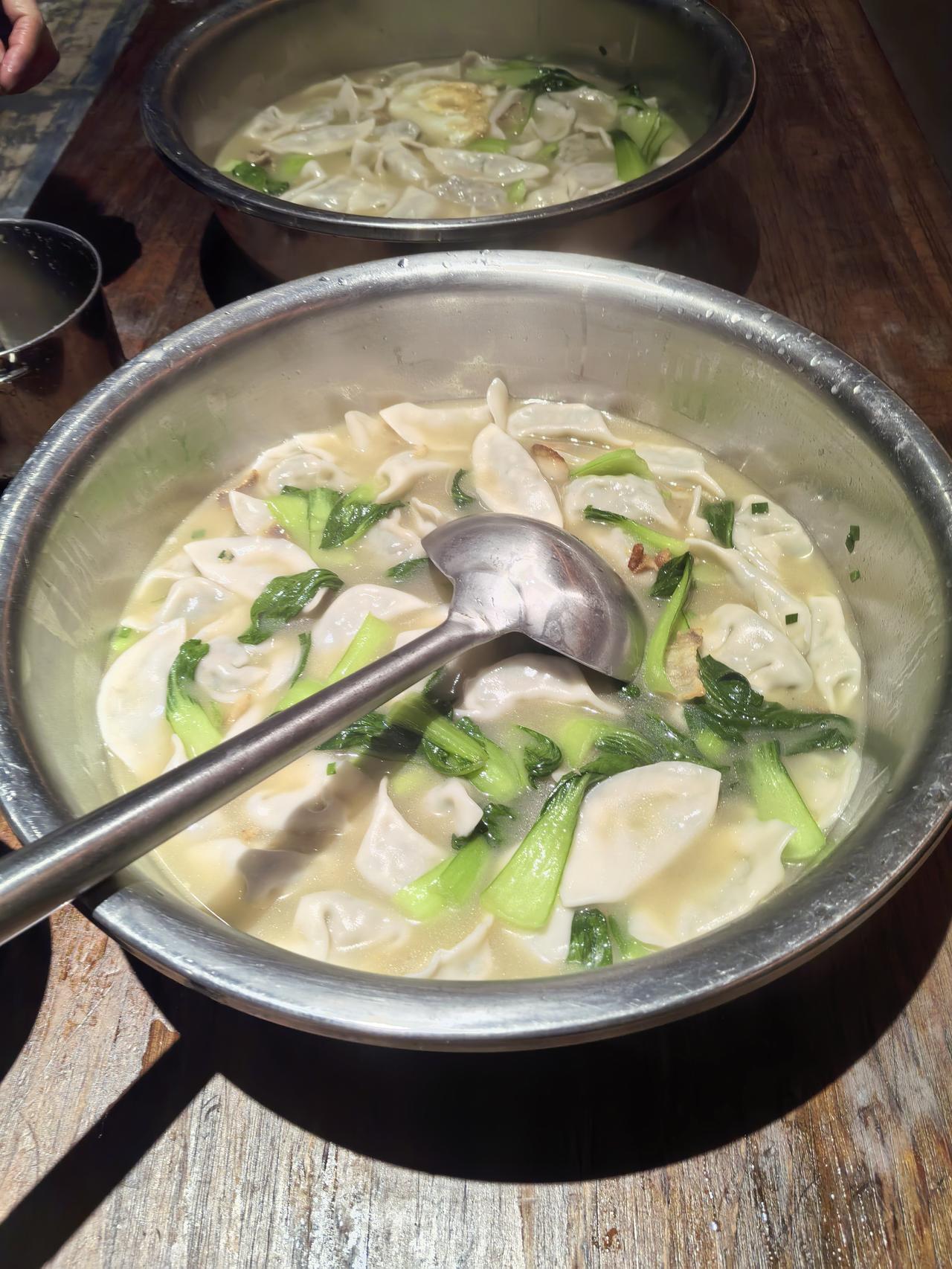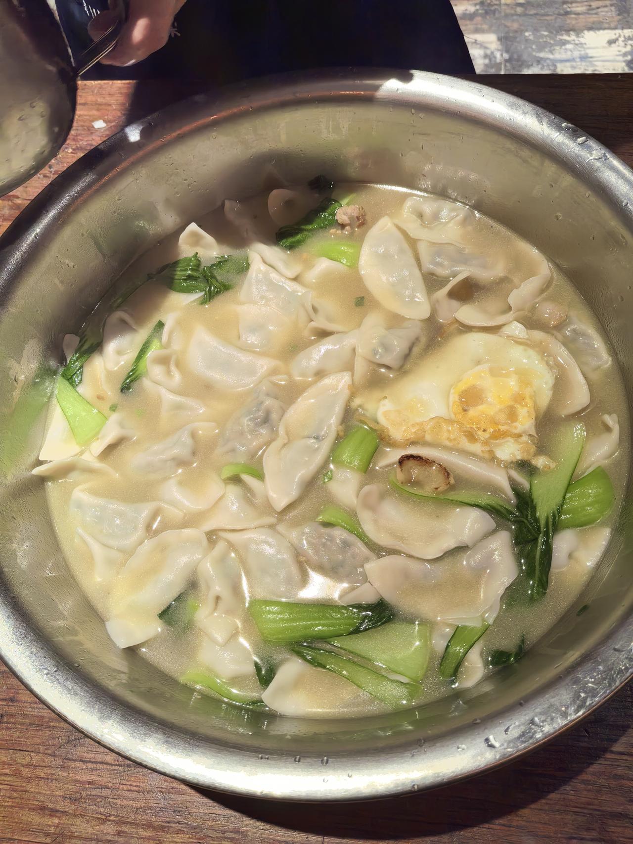 冬至大如年,人间小团圆!作为一枚厨师,今日晚餐的C位必须是饺子~ 别看饺子皮是后厨小伙伴们手忙脚乱捏出来的,模样算不上顶精致,但灵魂馅料可是我亲手调的!肥瘦黄金配比的肉馅,混着剁得细碎的葱姜,再淋上热油激出香味,生抽蚝油一拌,鲜味儿直冲天灵盖。 煮好的饺子鼓鼓囊囊,咬开就是满口爆汁,服务员小姐姐们包的褶皱里都裹着烟火气。一口一个下肚,冬至的寒意瞬间被暖透,这才是冬天该有的味道嘛~ 冬至吃饺子 厨师的日常